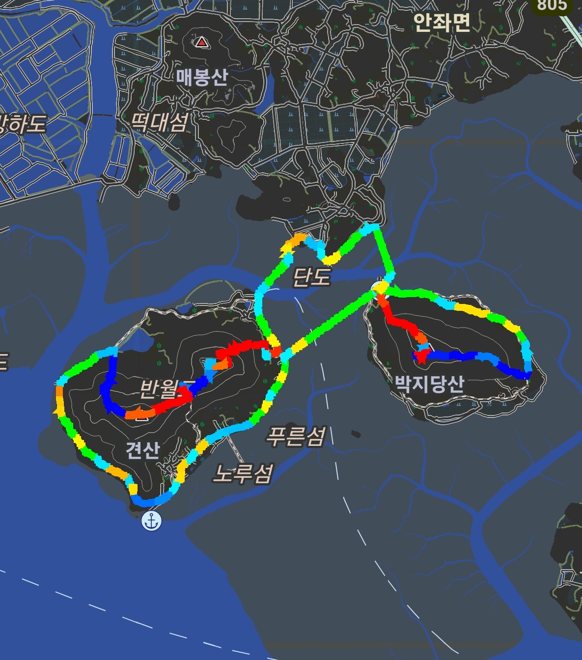 두번째 화면에서 보면 섬이고 높아봐야 200m 인데 (고저에서 209m라고 나오죠) 이게 천미터 이상을 오르고 내려왔다는게 말이 안 되는 수치입니다.