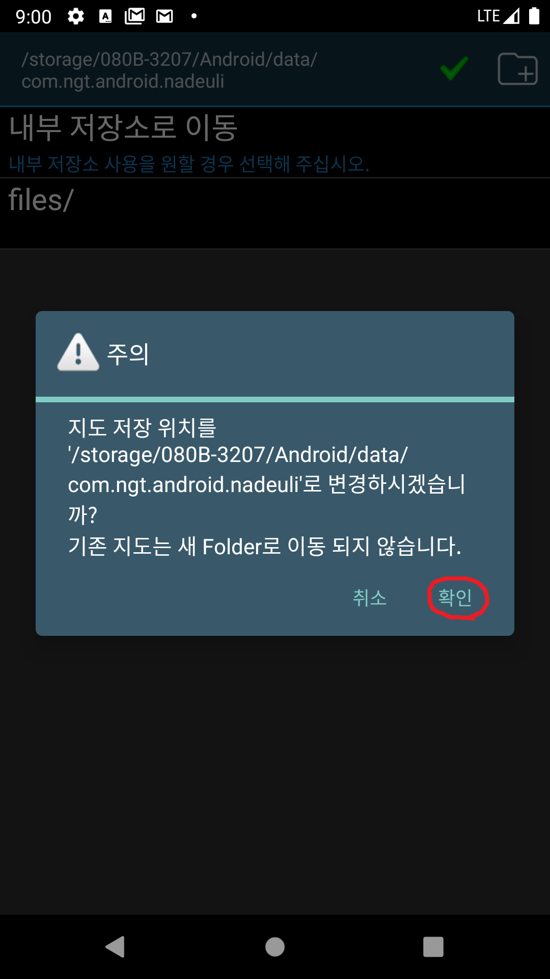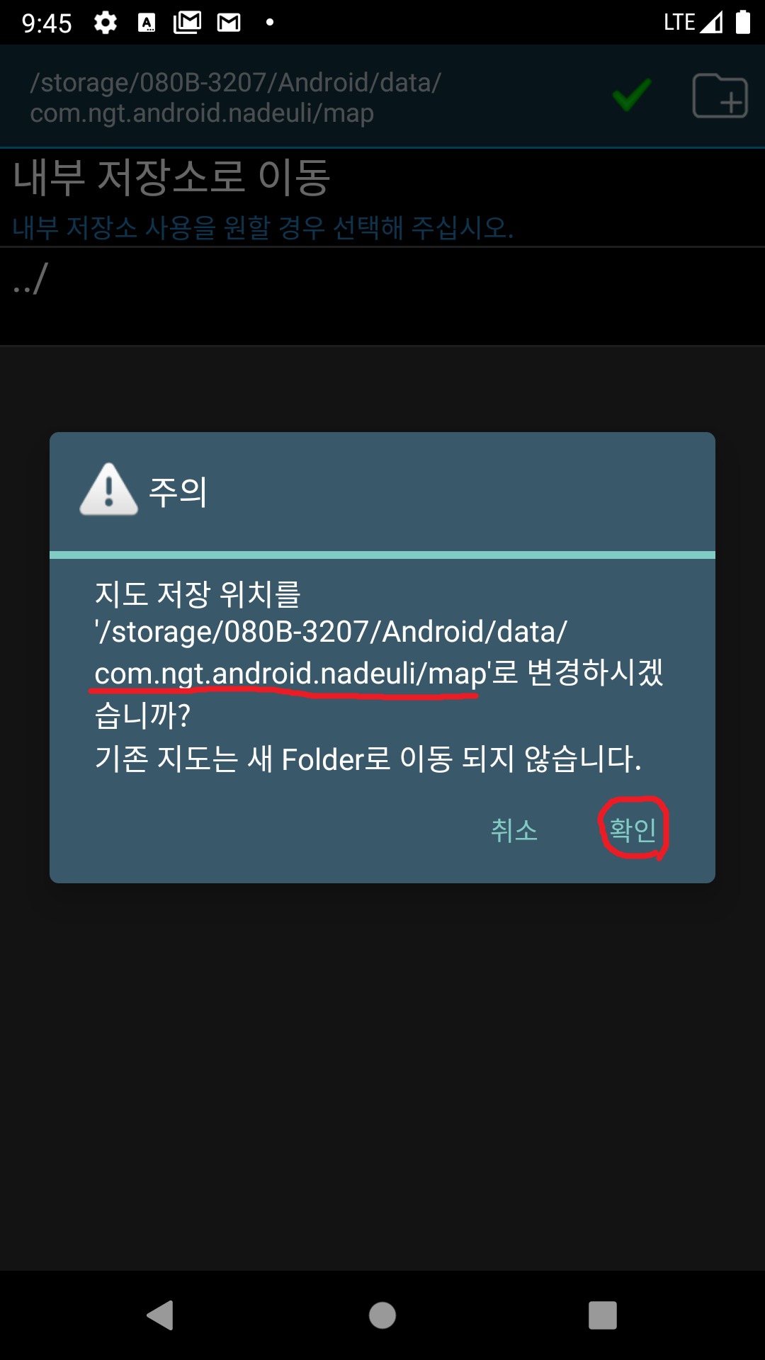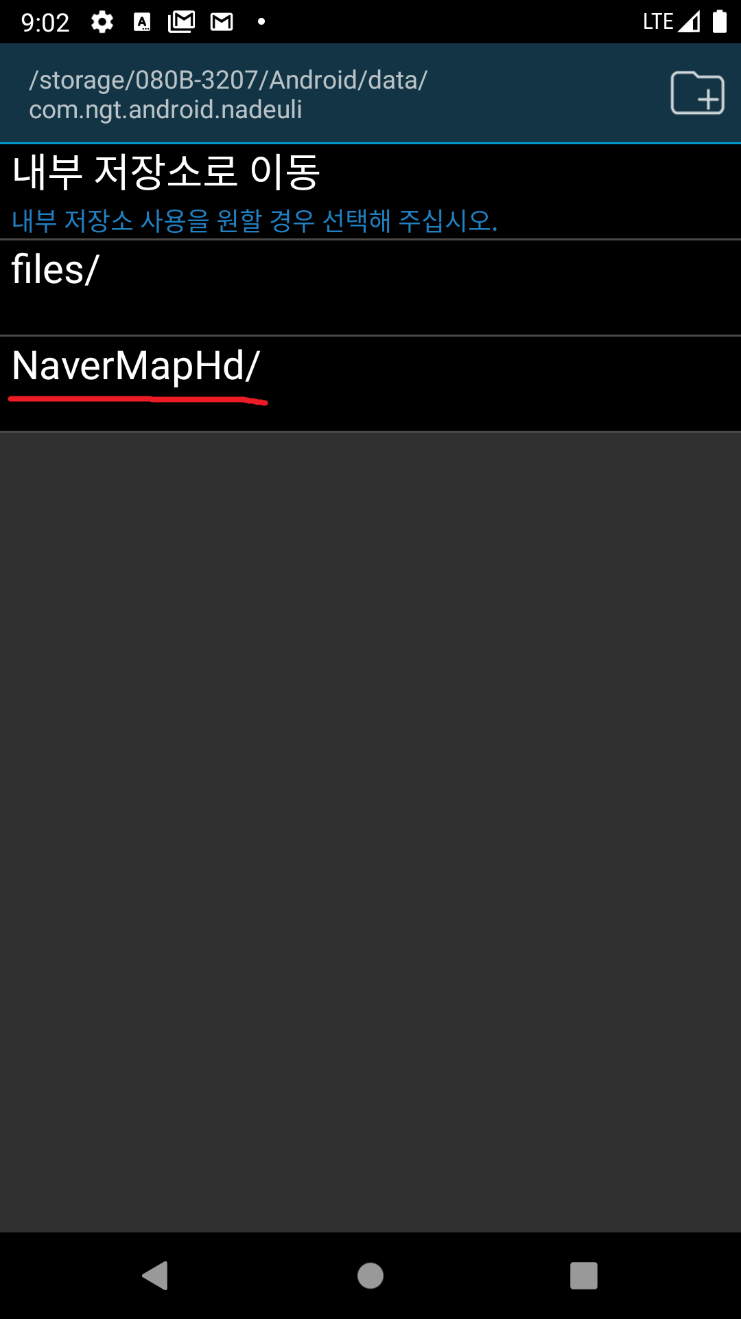 이제 지도 저장 위치가 com.ngt.android.nadeuli/map으로 변경된 것을 확인 할 수 있습니다.