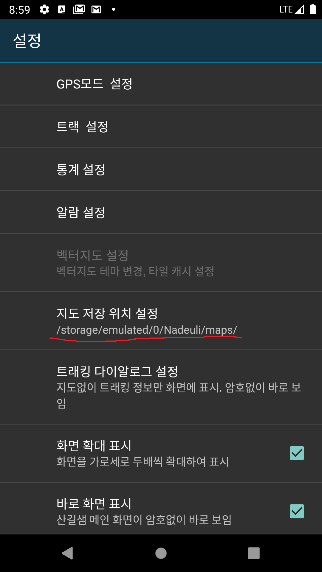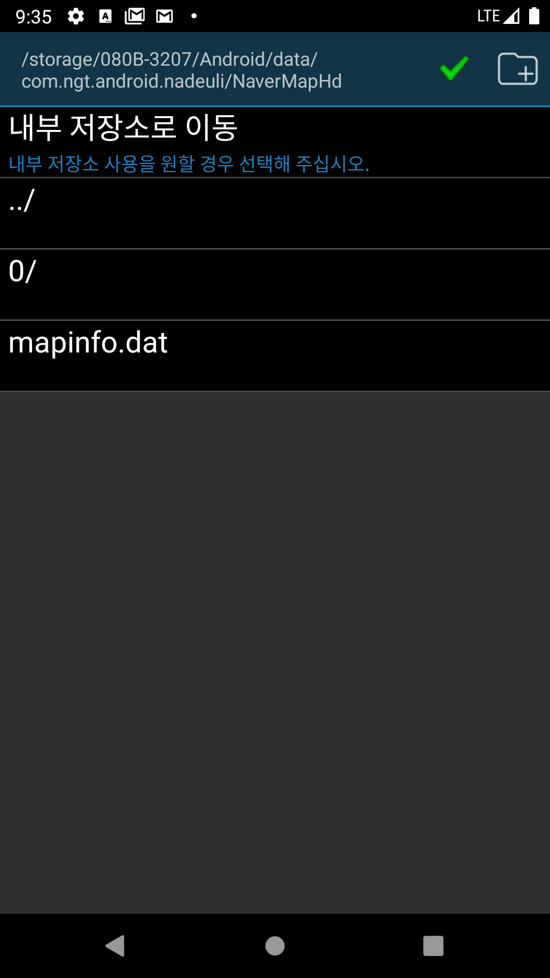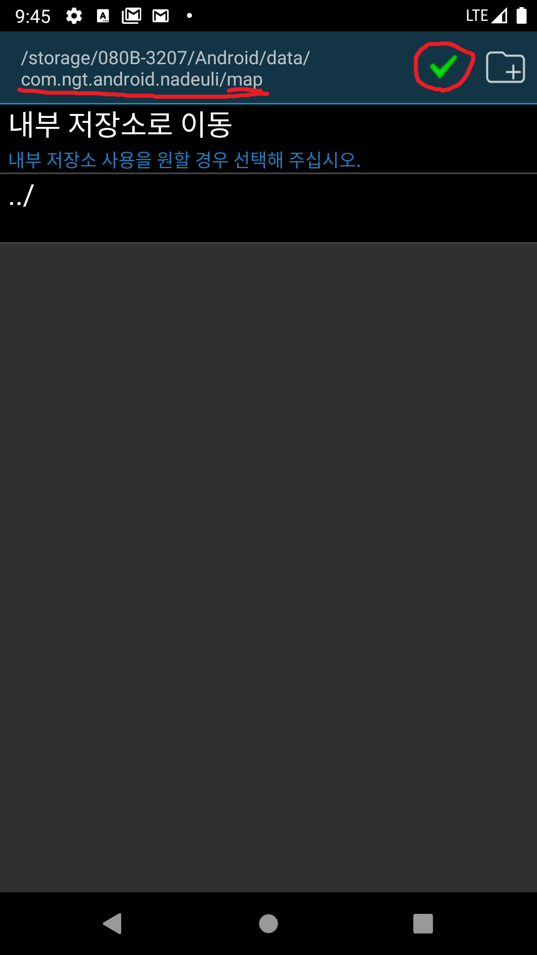 이제 지도 저장 위치가 com.ngt.android.nadeuli/map으로 변경된 것을 확인 할 수 있습니다.