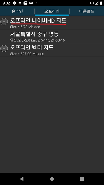다운로드 후 오프라인 지도를 보면 "오프라인 네이버 HD지도"가 보입니다.