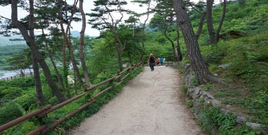 회손되지 않은 자연 그대로의 풍경을 보면서 산과 물 숲이 어우러진 힐링 되는 코스입니다