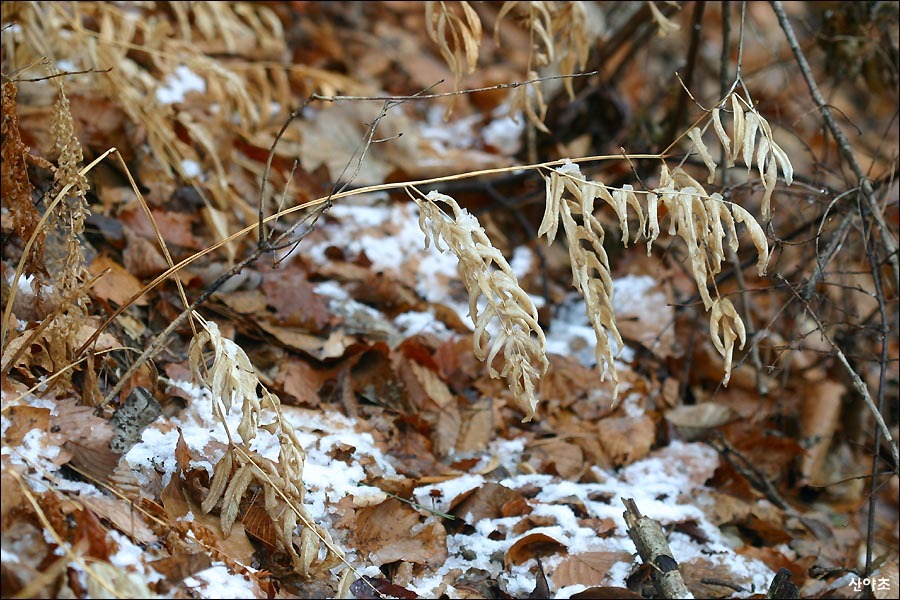 영양엽은 2회 羽狀複葉 이고 우편은 길이 20~30Cm로서 밑에 있는 것이 가장 길다.