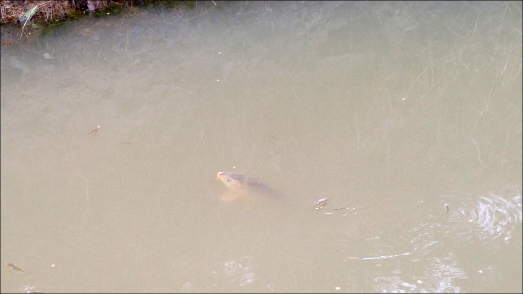 낚시하여 낚은 잉어를 웅덩이에 넣어 두었더니 제법 컷습니다.