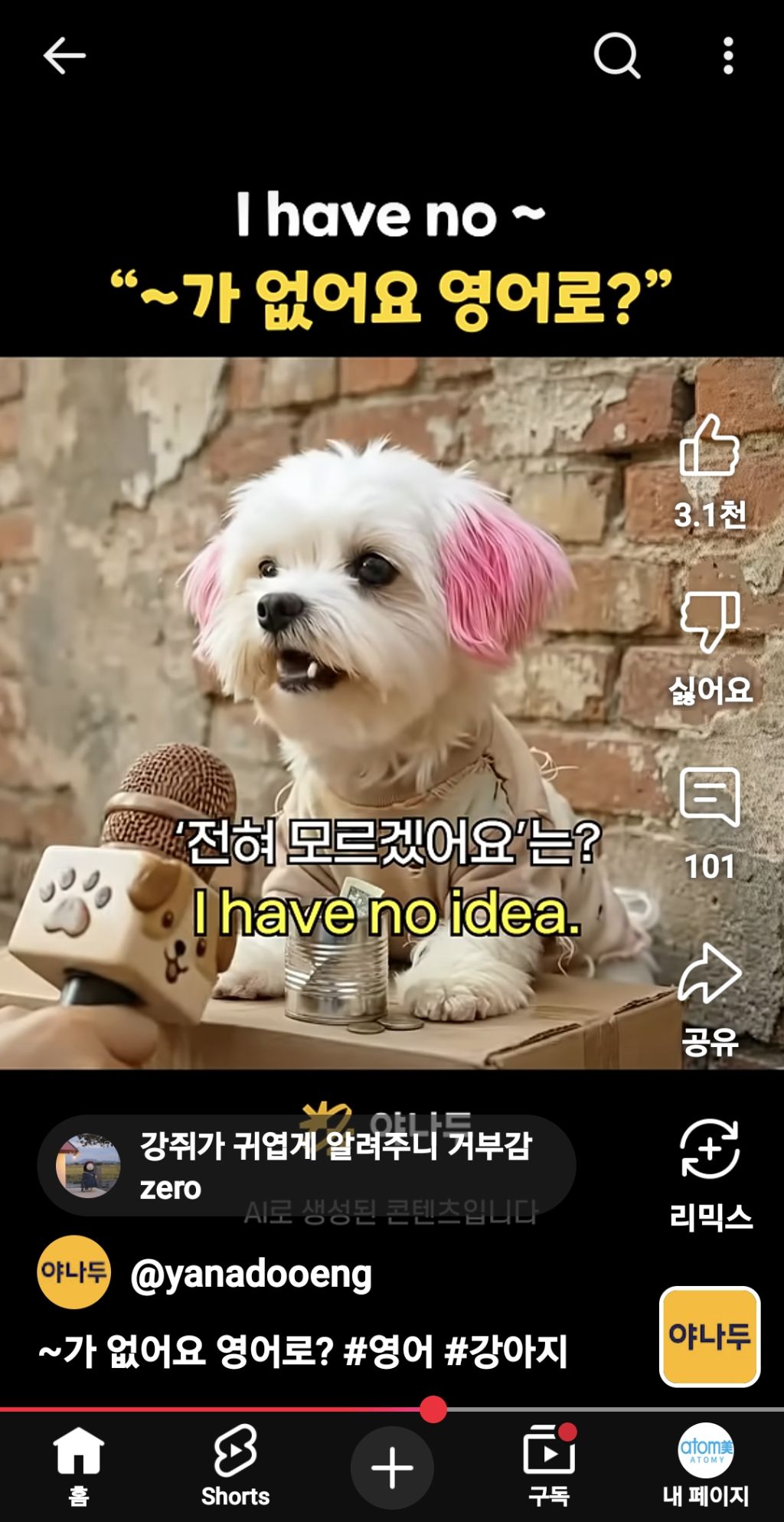 돈이 없어요. 작성자죽비(논산)|작성시간26.01.07|조회수193 목록 댓글 3 글자크기 작게가 글자크기 크게가 강아지도 하는 영어~ㅋhttps://youtube.com/shorts/BuPbf1wkk4Y?si=Bs_Bu6xYNaRF4iFW 다음검색 현재 게시글 추가 기능 열기 북마크 공유하기 신고 센터로 신고 댓글 댓글 3 댓글쓰기 답글쓰기 댓글 리스트 작성자청영(서울) | 작성시간 26.01.07 이거 좀 슬프다요ㅎㅎ 작성자은주(서울) | 작성시간 26.01.07 아이노우에너지~ ㅎ 작성자종희(인천) | 작성시간 26.01.09 참 쉽죠잉AI가 무섭네요 ㅎ 댓글 전체보기