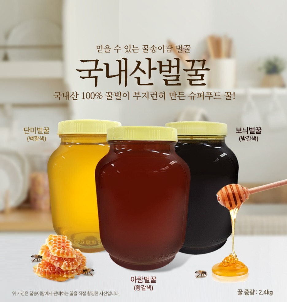 꿀송이팜 벌꿀(3) 2.4kg ((1병 = 38,000원, 6병 = 200,000원)