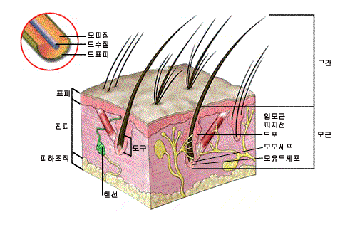 이 영양분은 주로 모낭을 둘러싸고 있는 모세혈관을 통해 공급되지만 두피세포 사이와 모공 및 한선 등을 통해서도 흡수된다.