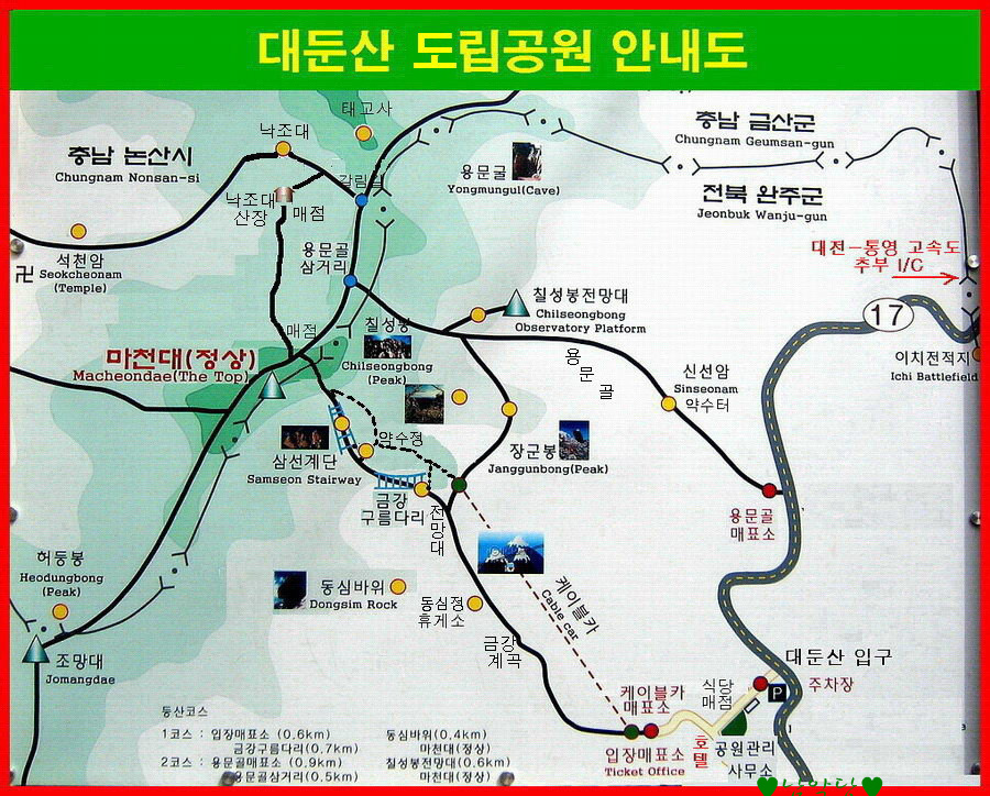 대둔산주차장~케이블카매표소~구름다리~삼선계단~마천대(정상)원좀산행