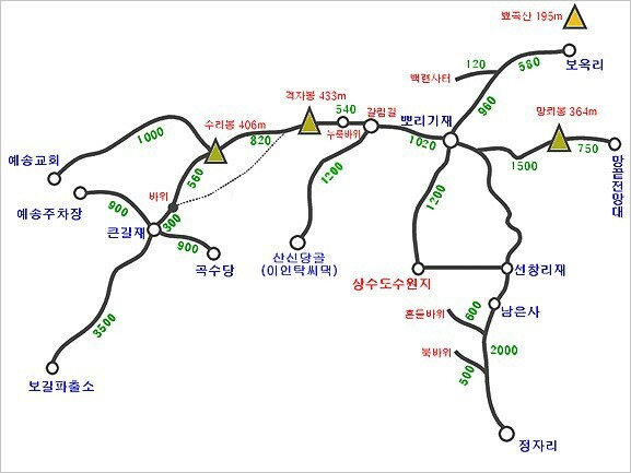 다. 산행코스 : 곡수당 주차장 - 큰길재 - 수리봉 - 격자봉 - 갈림길