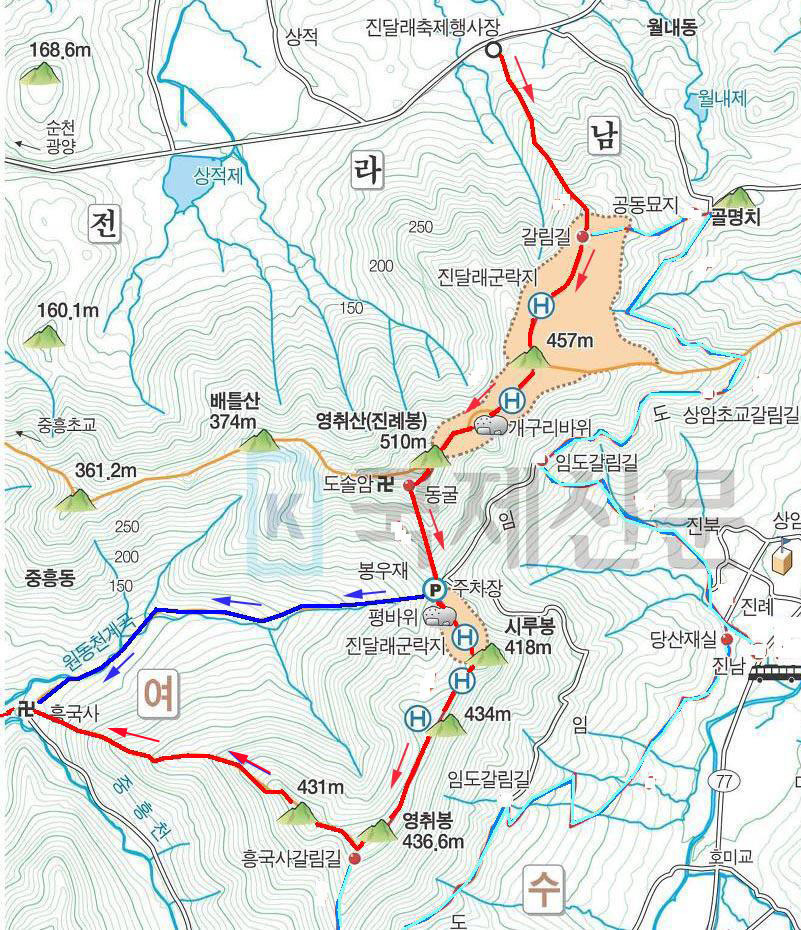 봉우재 → 영취산 → 439봉 → 갈림길(오른쪽) → 흥국사