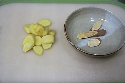 2. 생강은 마늘크기로 5토막 준비후 저며줍니다.