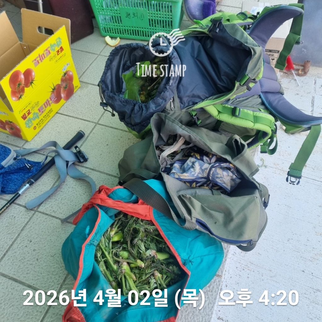 방금 하산한 산행물 가방입니다