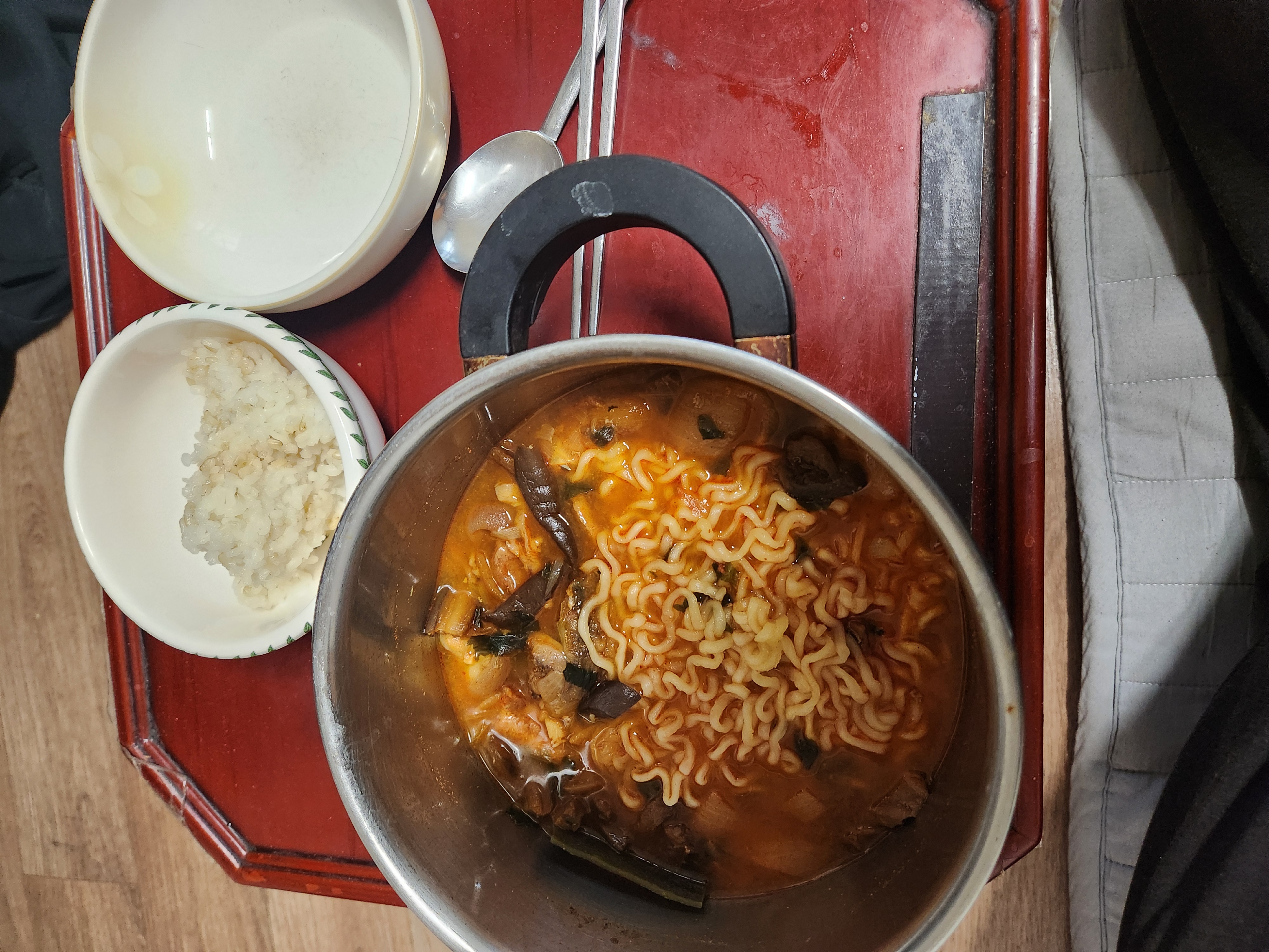 어제 버서찌개을 해묵고 남은게에 아침에 라면 끼맀습니다
