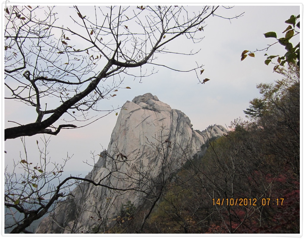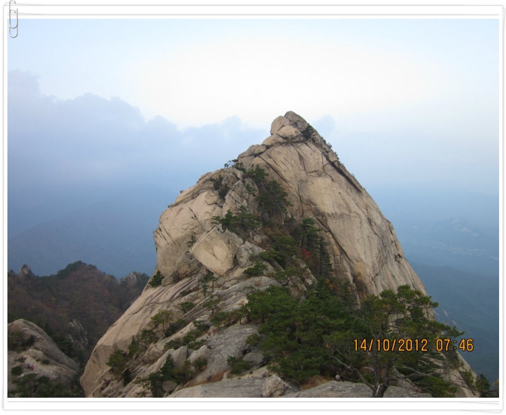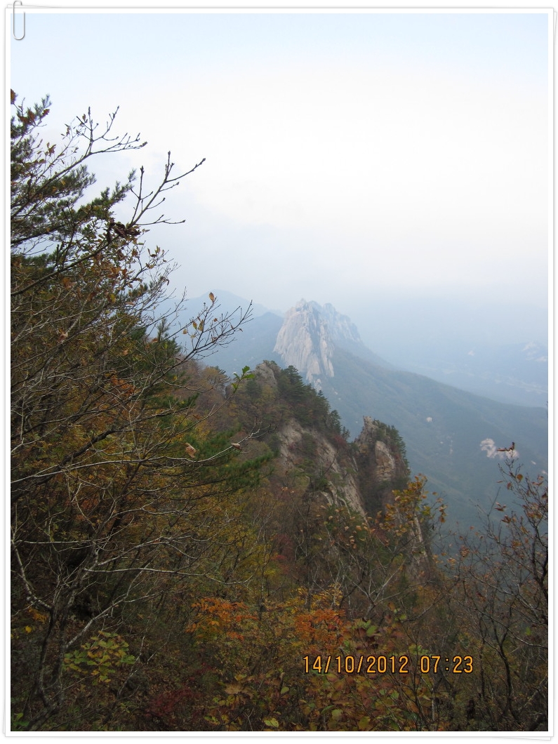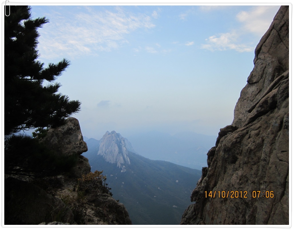 날이 밝아 오면서 아침에 달마봉에 오르면서 뒷쪽의 울산바위를 담았습니다