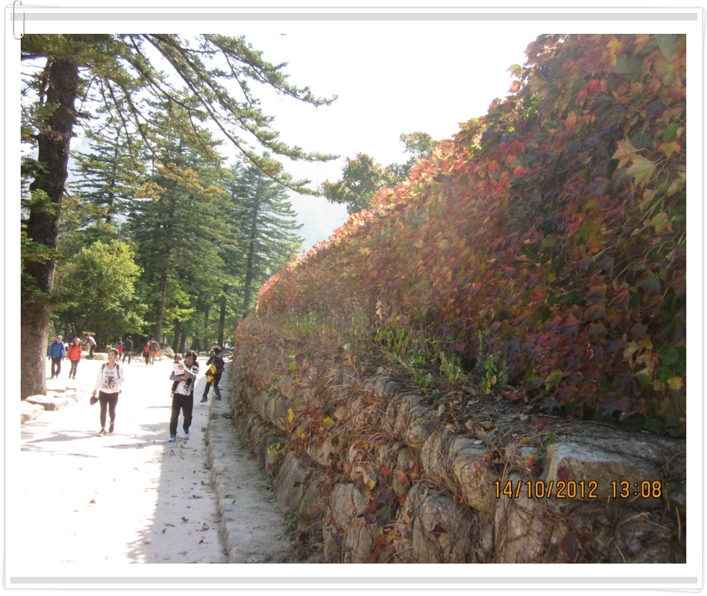신흥사 절에 담쟁이 덩굴로 덮여있는 돌담
