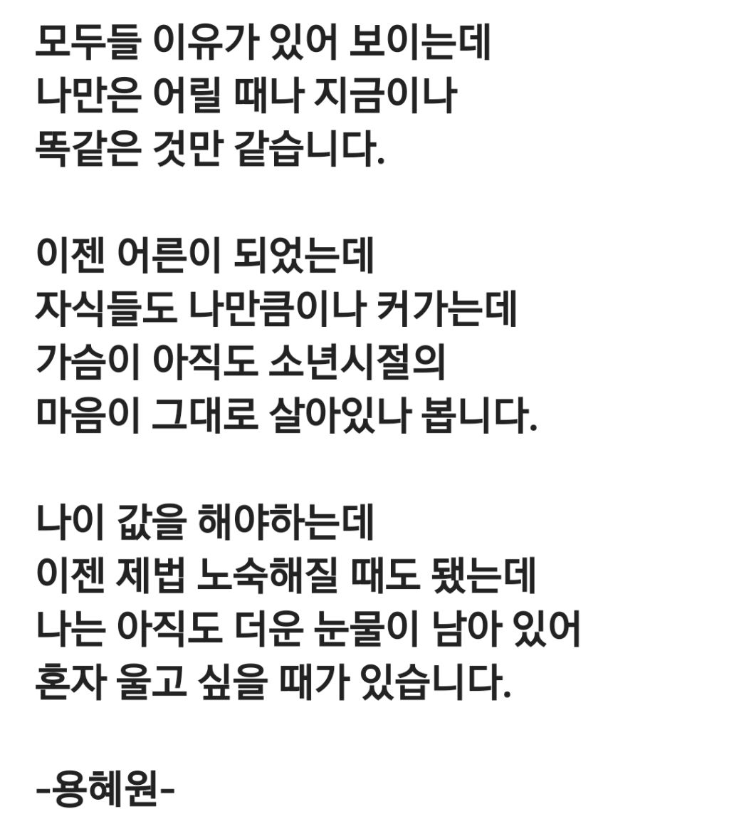 작성자보 고 픈 작성시간 26.04.10 용혜원의 혼자울고싶을때