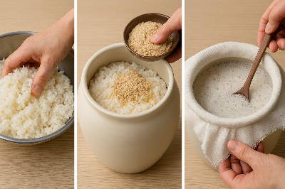 쌀과 누룩, 물이라는 단순한 재료로 만들지만, 발효 온도와 시간 조절이 무엇보다 중요합니다.