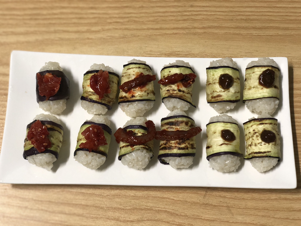 구워놓은 가지로 돌돌 만다음