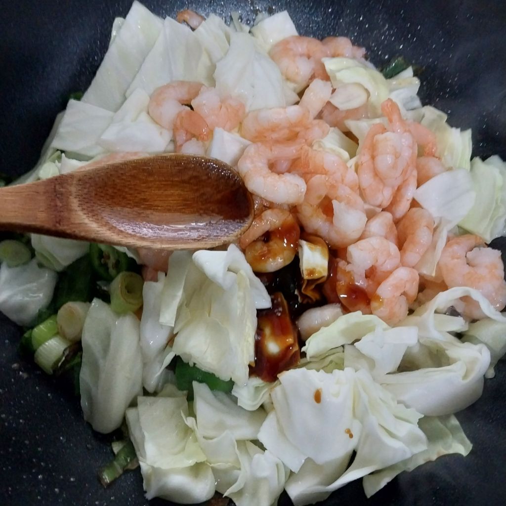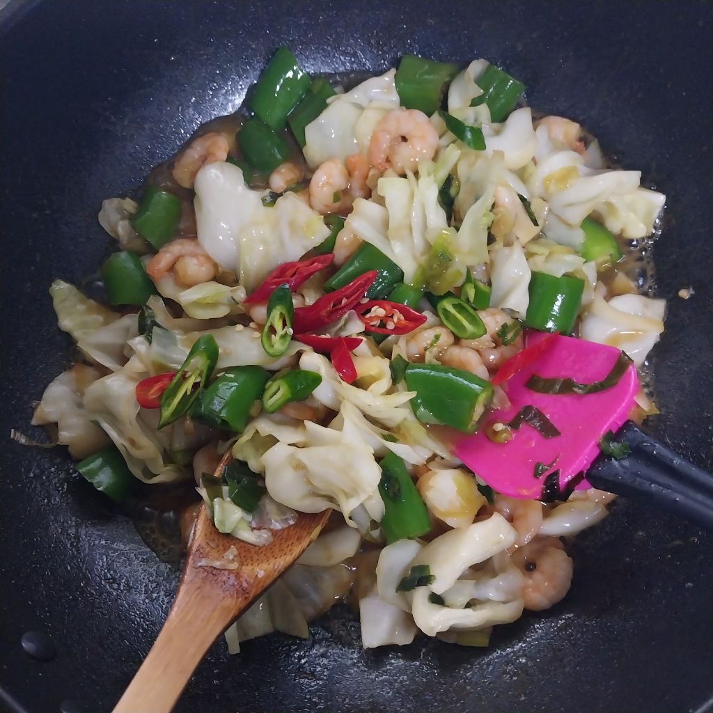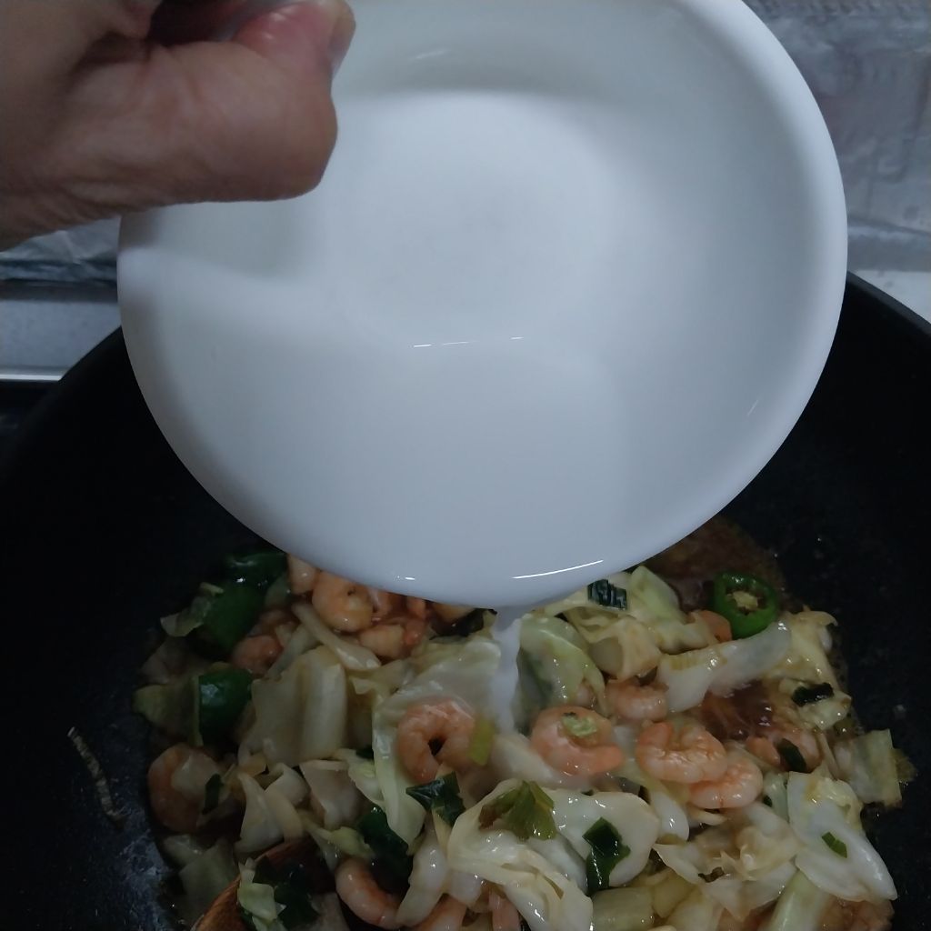 냉동새우와 양배추 아삭이고추로