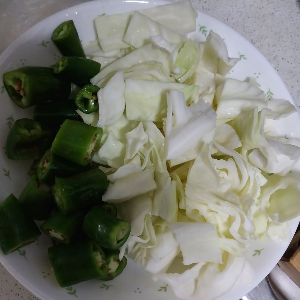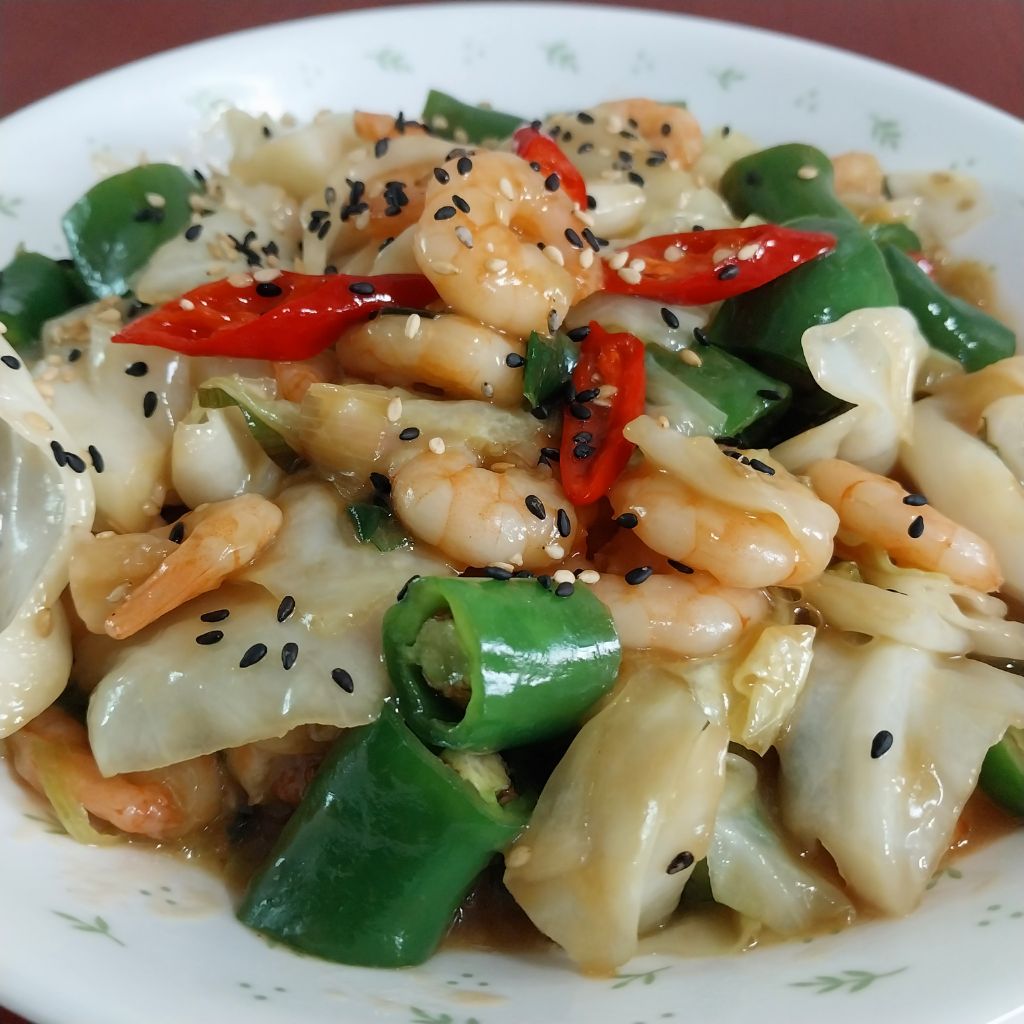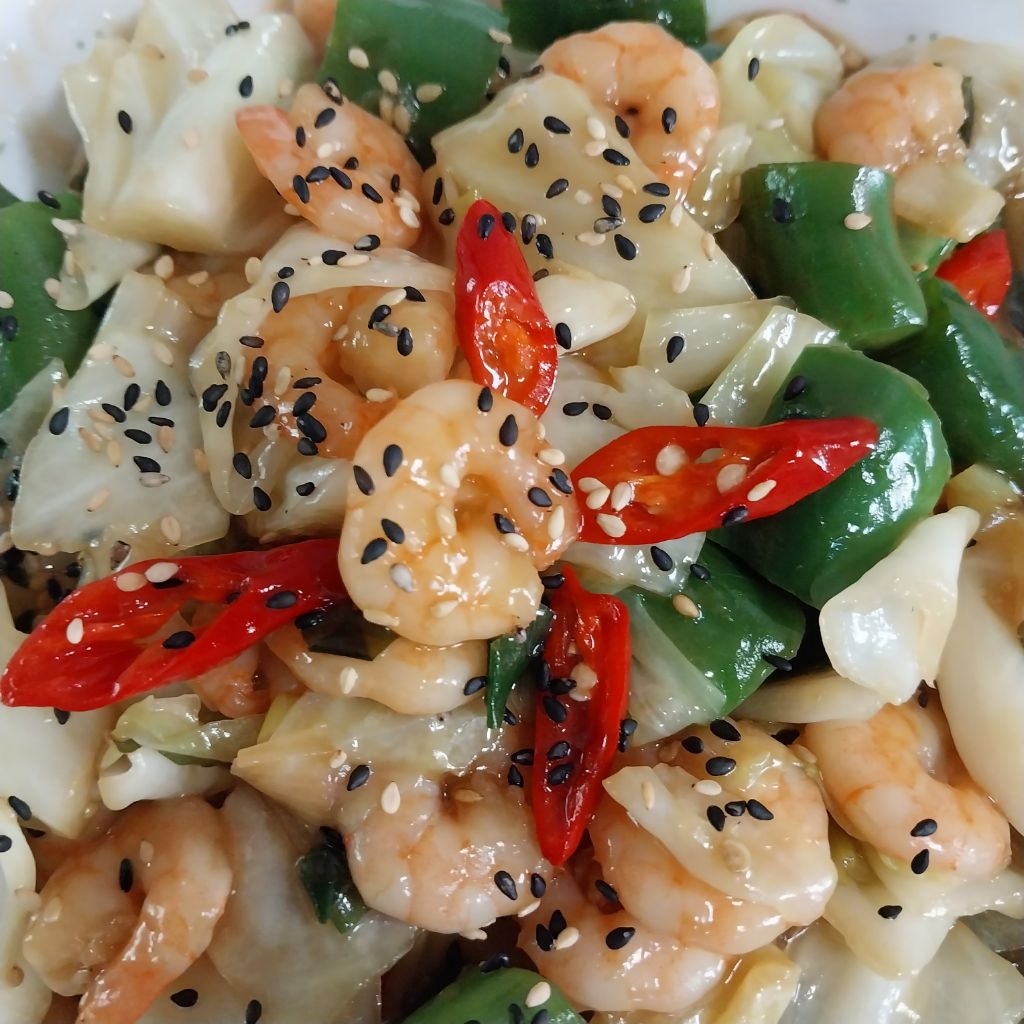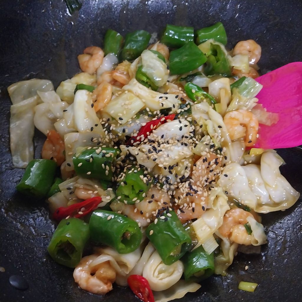 냉동새우와 양배추 아삭이고추로