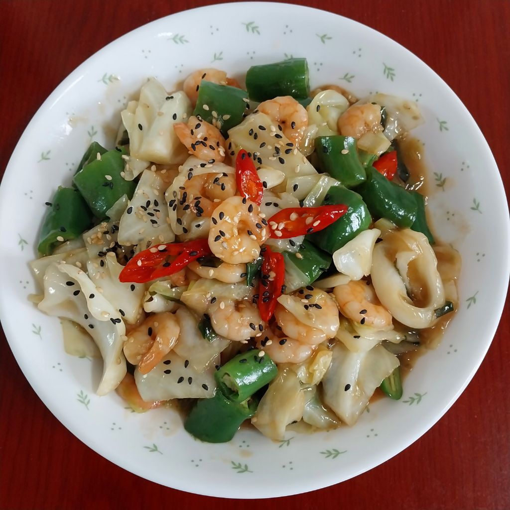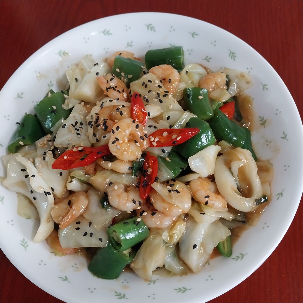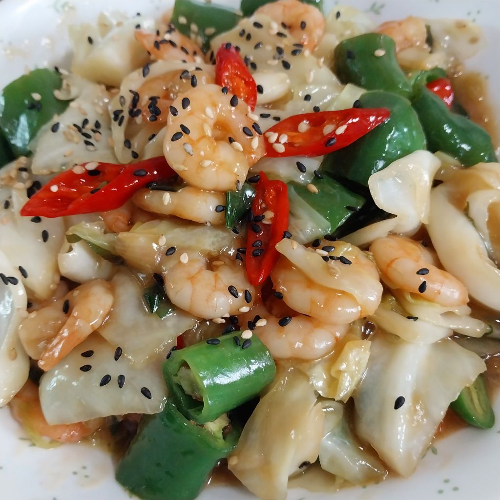 ♡재료;새우 양배추 아삭이고추 청량고추 홍고추 대파