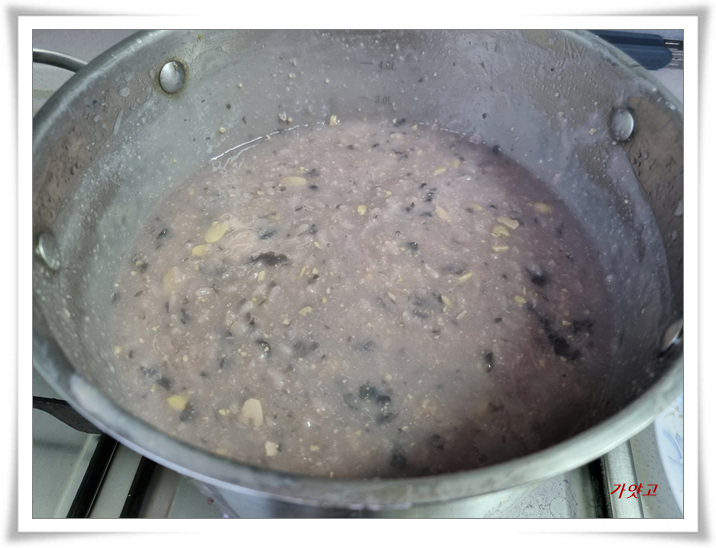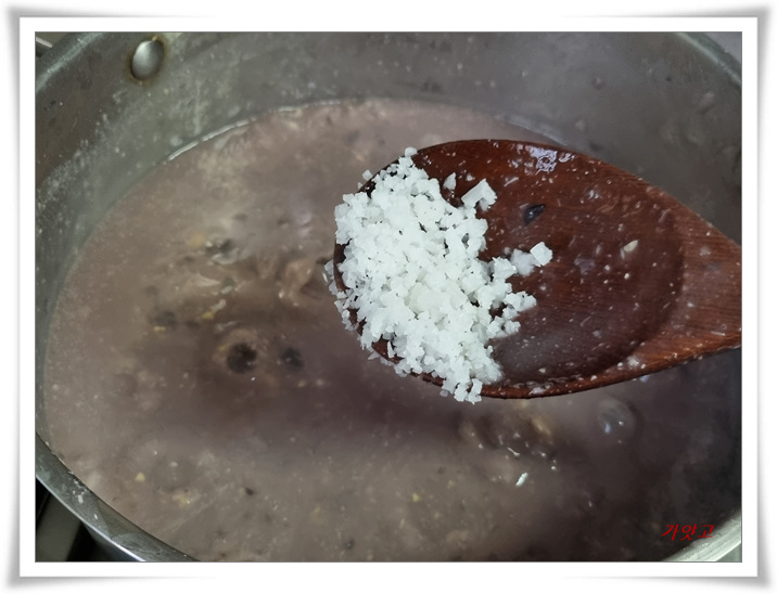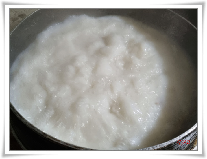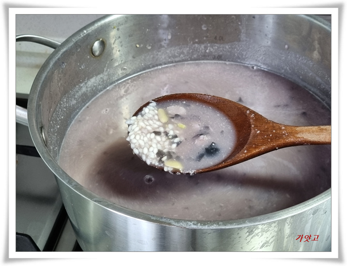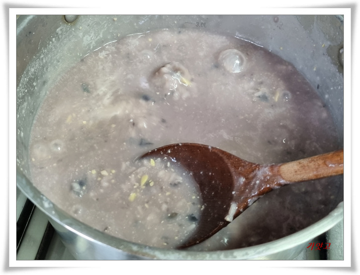 저어가면서 죽을 쑵니다.