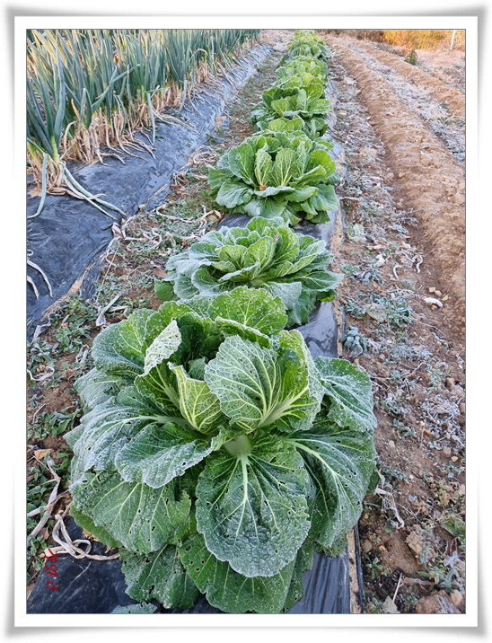 파란 배추가 눈길을 끄네요
