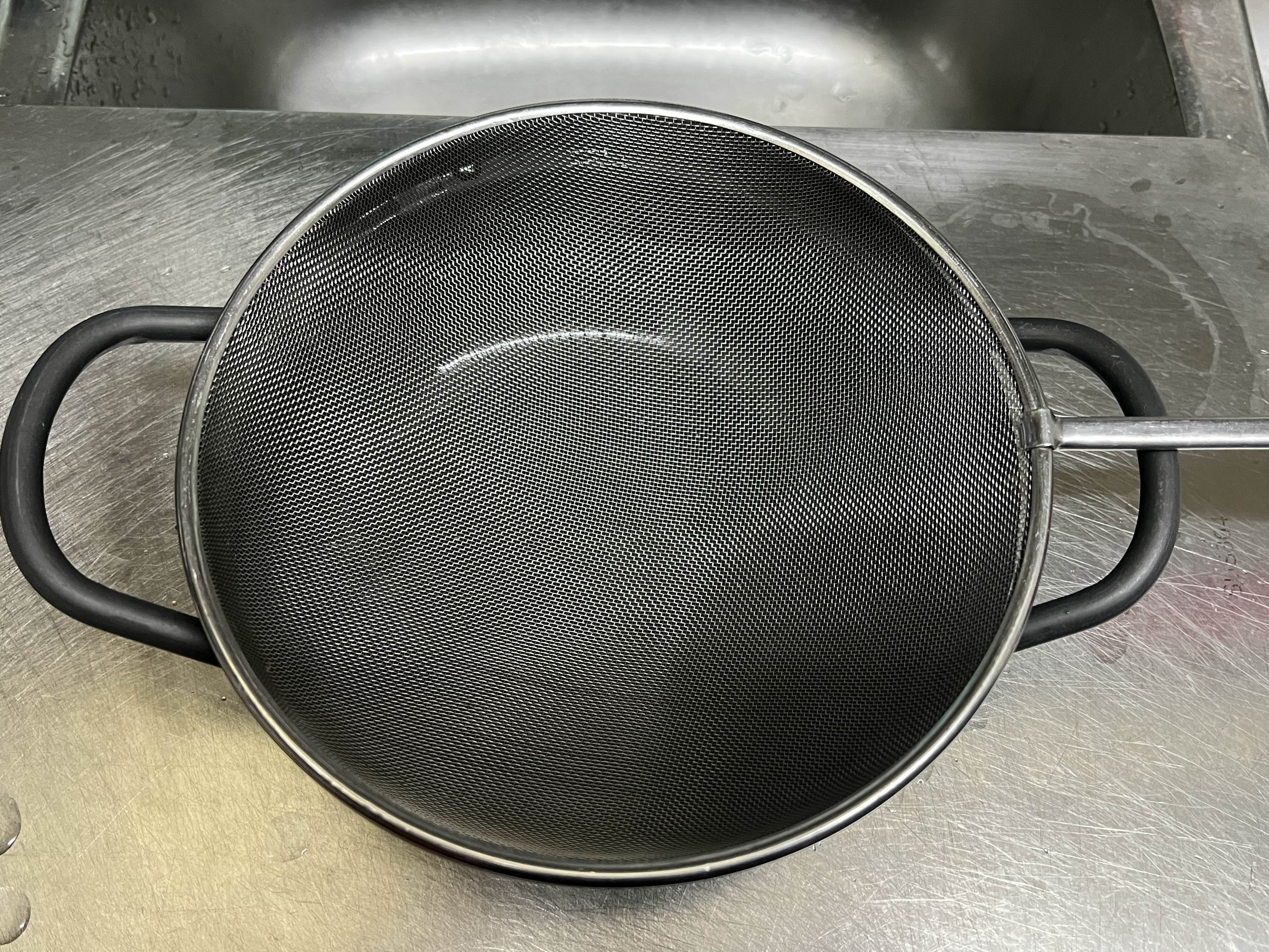 작은 냄비에 체 놓고