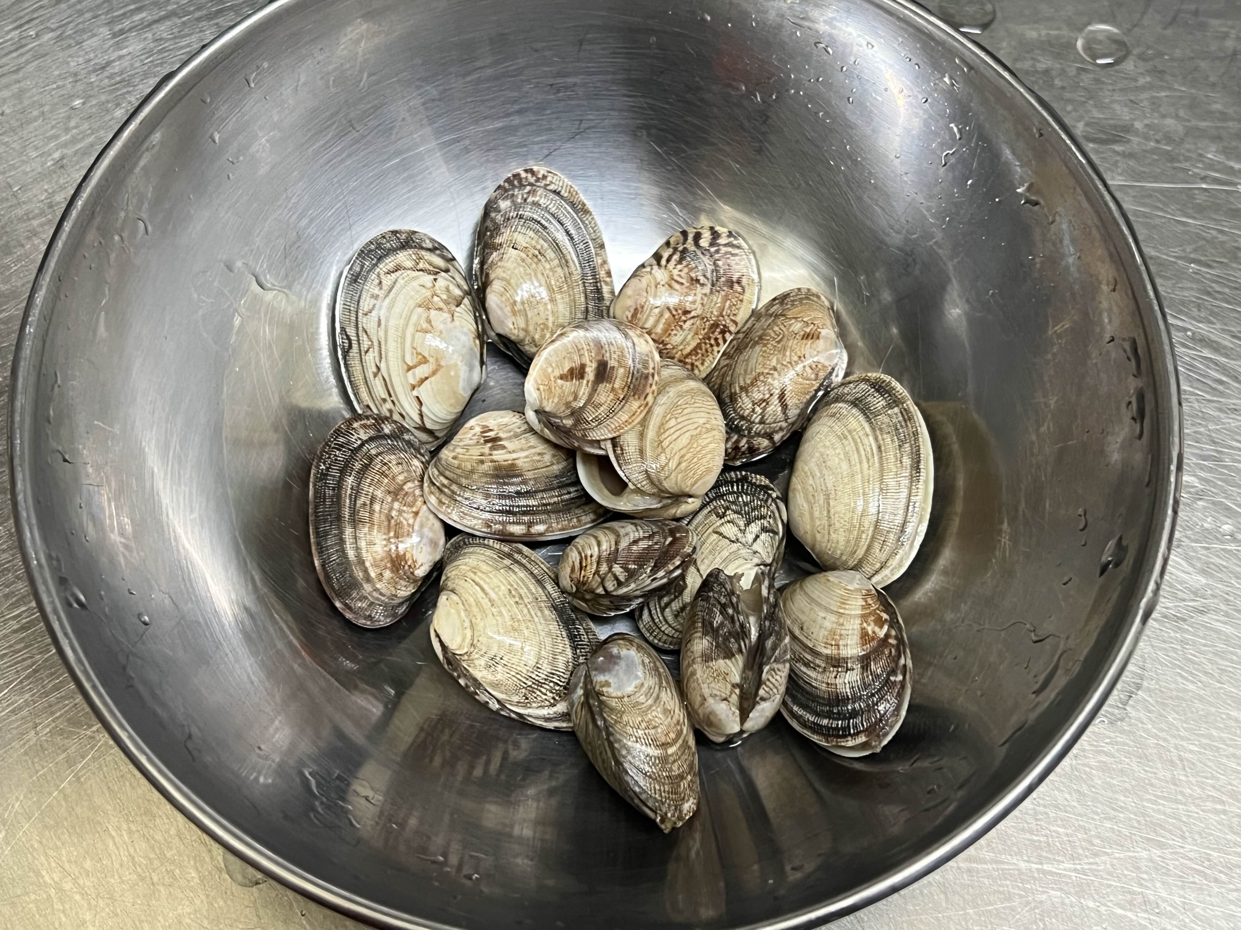 냉동실에 소분해둔 바지락 한줌 꺼내서 씻어두고