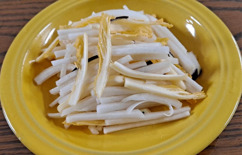 콜라비를 같은 크기로 채썰어