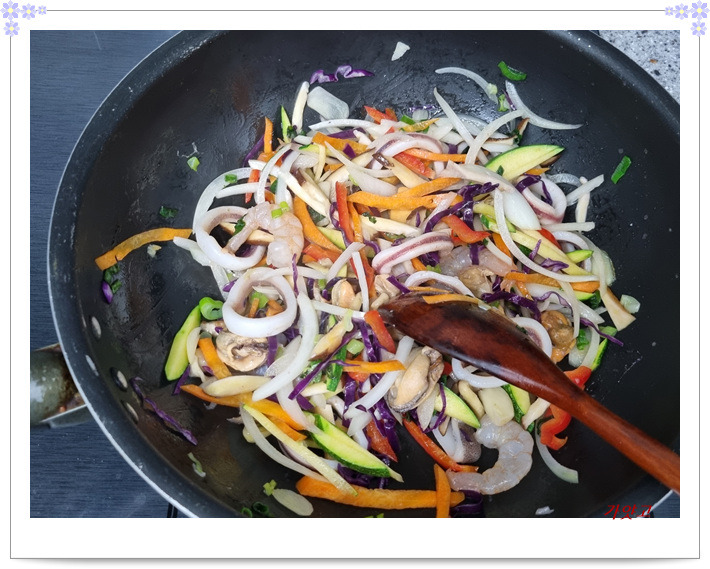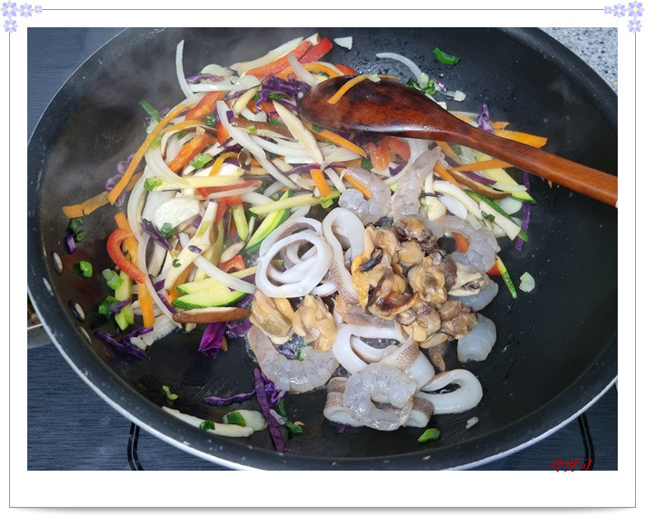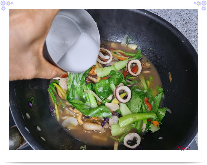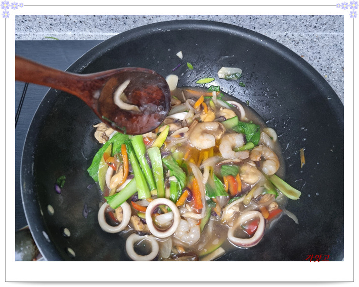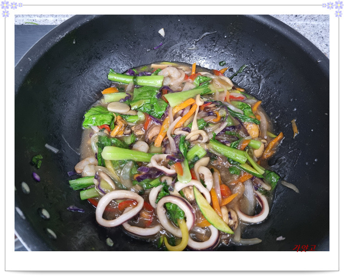 해물들을 넣어 살짝 익혀준 다음,