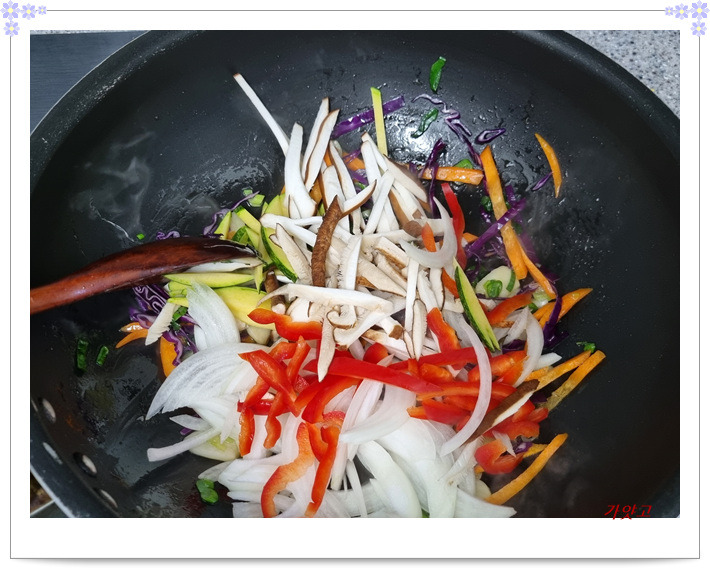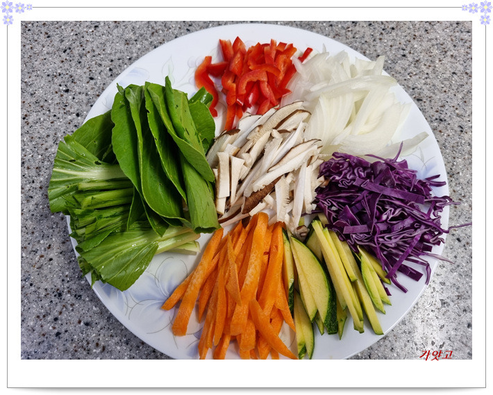 파프리카, 양파, 적양배추, 호박, 당근, 표고버섯