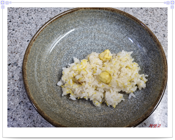 접시에 밤밥 한 주걱 올리고,
