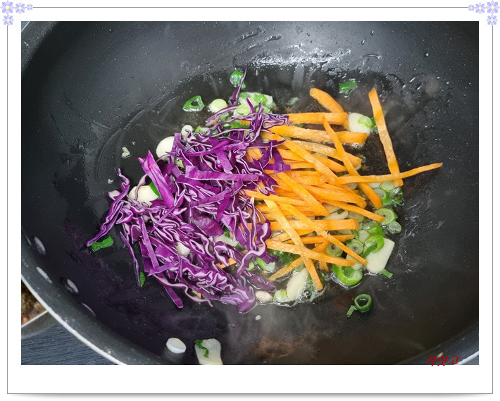 적양배추랑 당근부터 볶다가