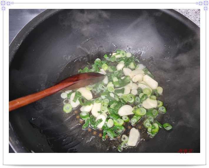 마늘이랑 대파를 먼저 볶아 향을 냅니다.