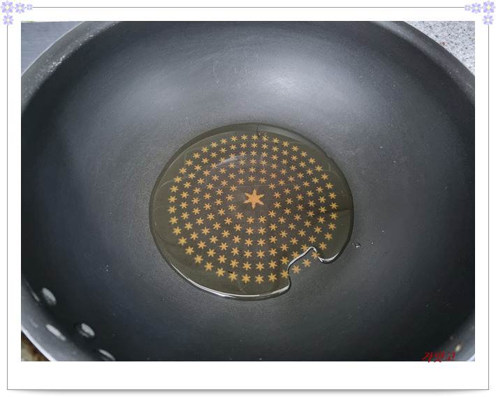 궁중팬에 현미유 4큰술 넣고