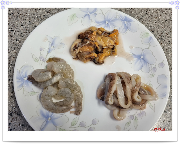 냉동실에 있던 해물 3가지 준비했어요