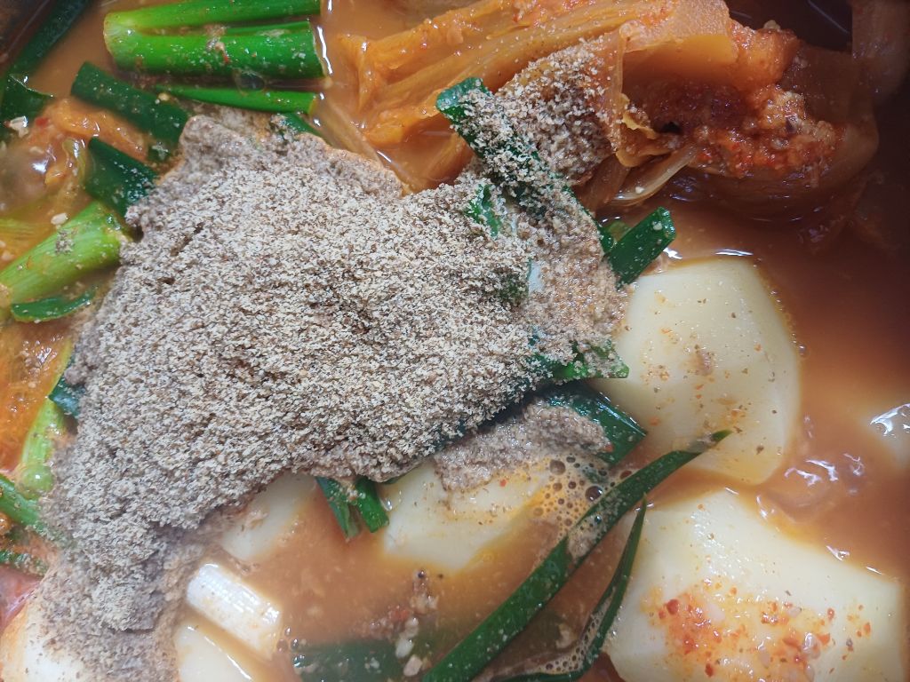 들깨가루 듬뿍 얹어주고