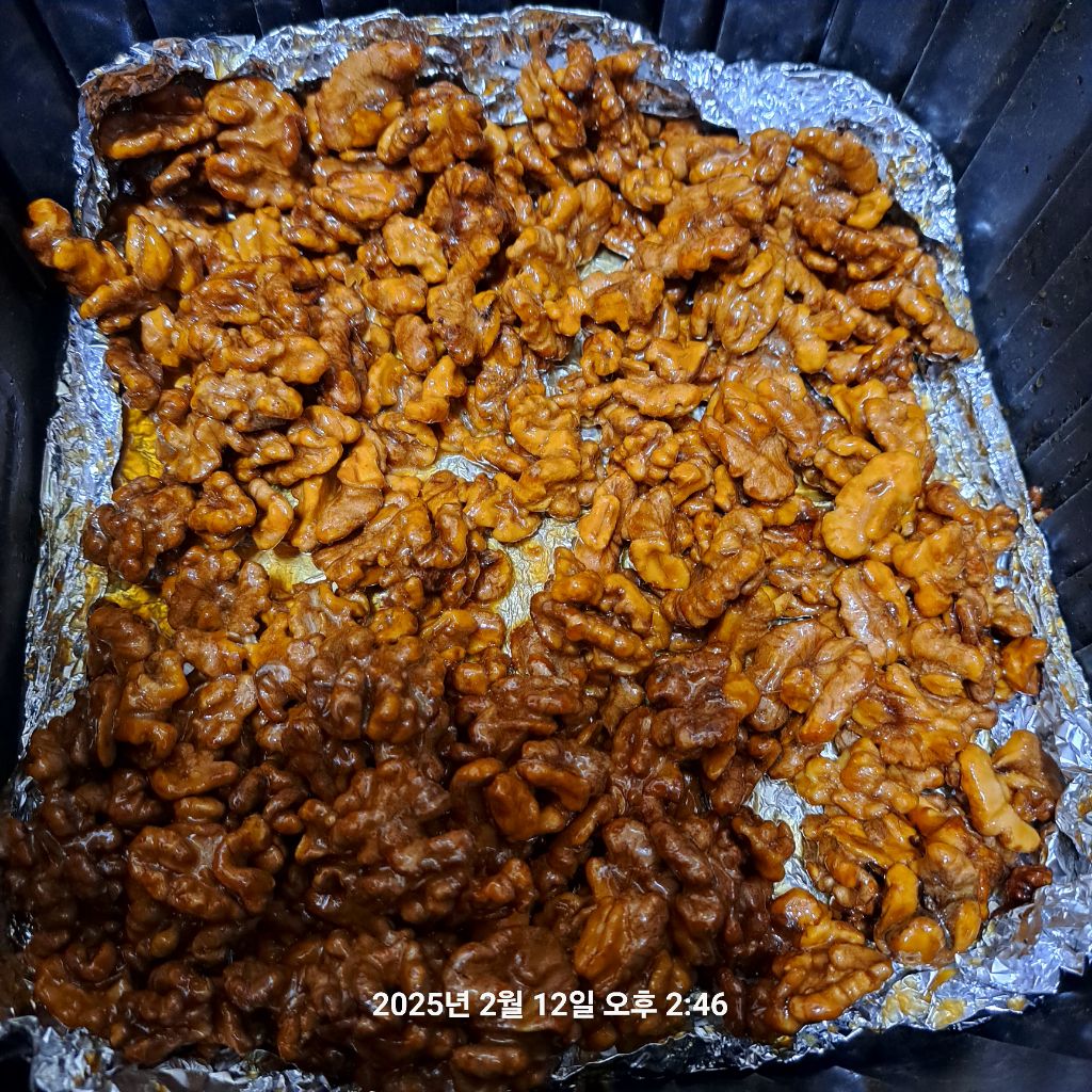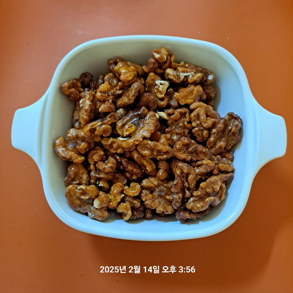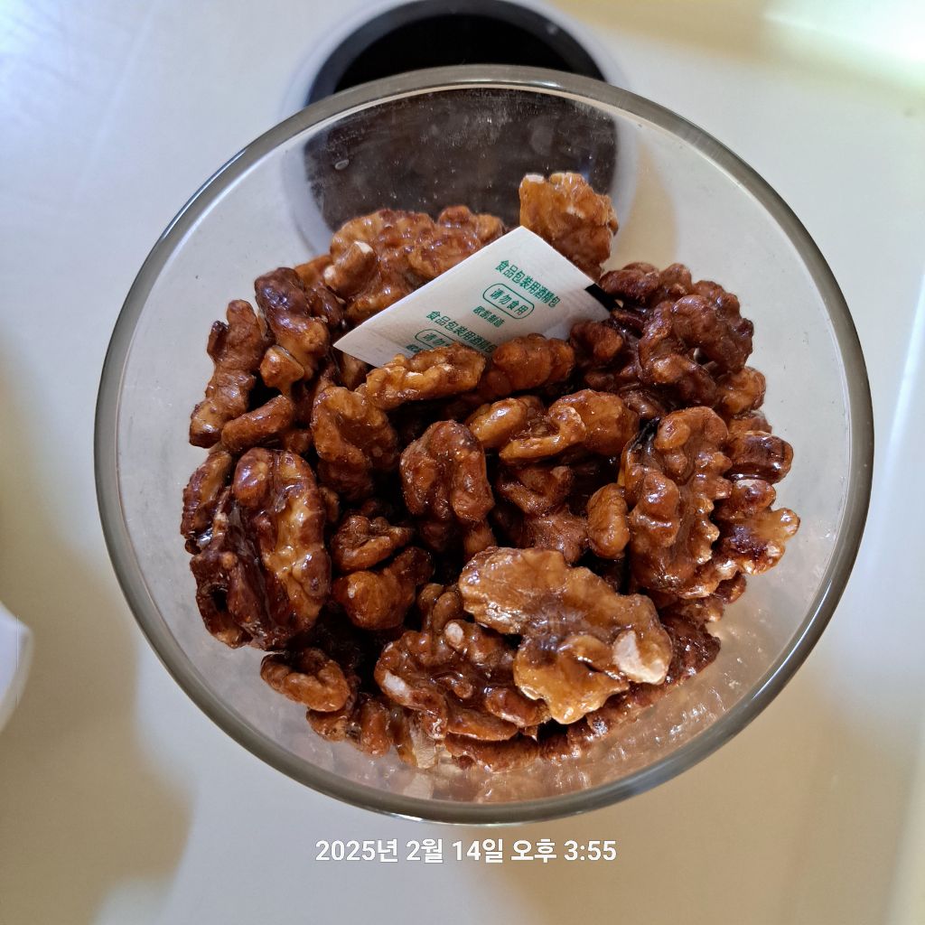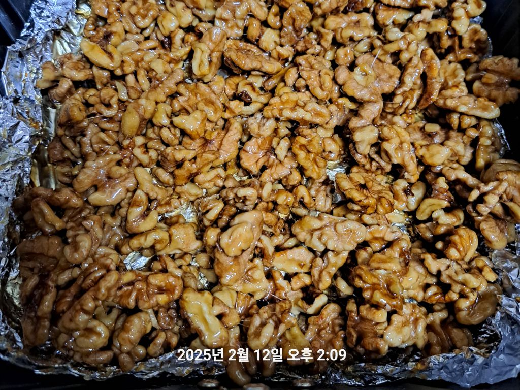 실리카겔 넣고 냉장보관하면 한동안 맛 변함없이 보관하며 즐기는 호두 정과입니다