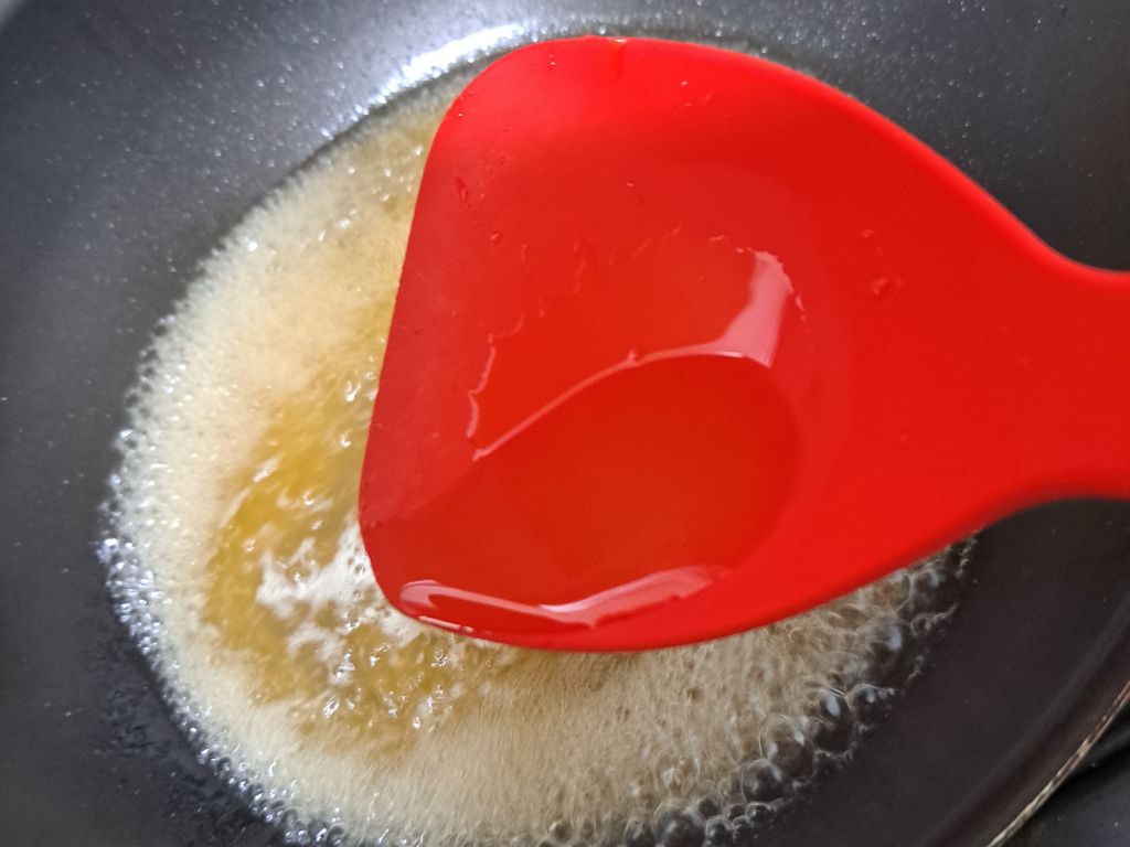 시럽이 졸아들면 에프에 쏟아