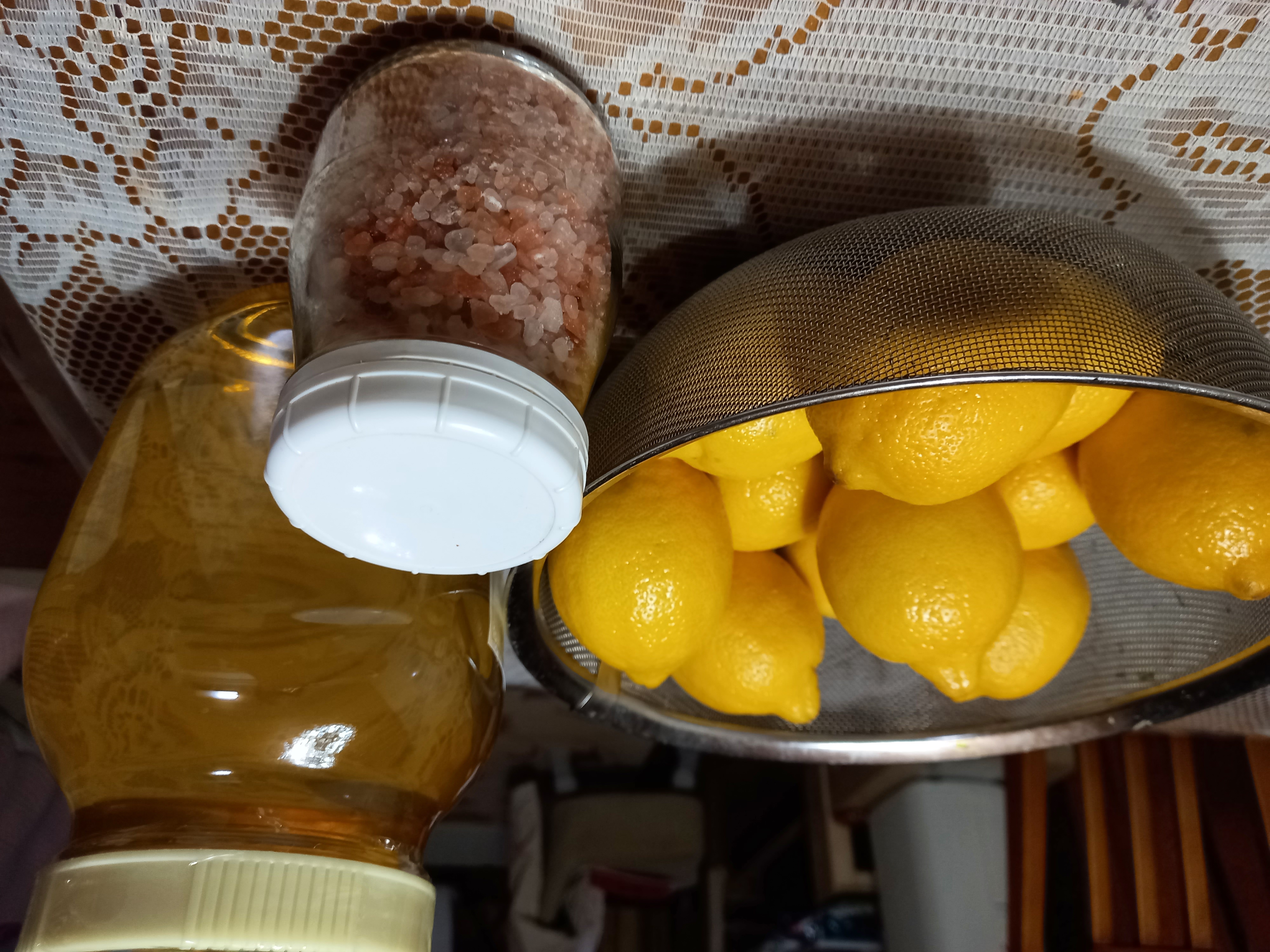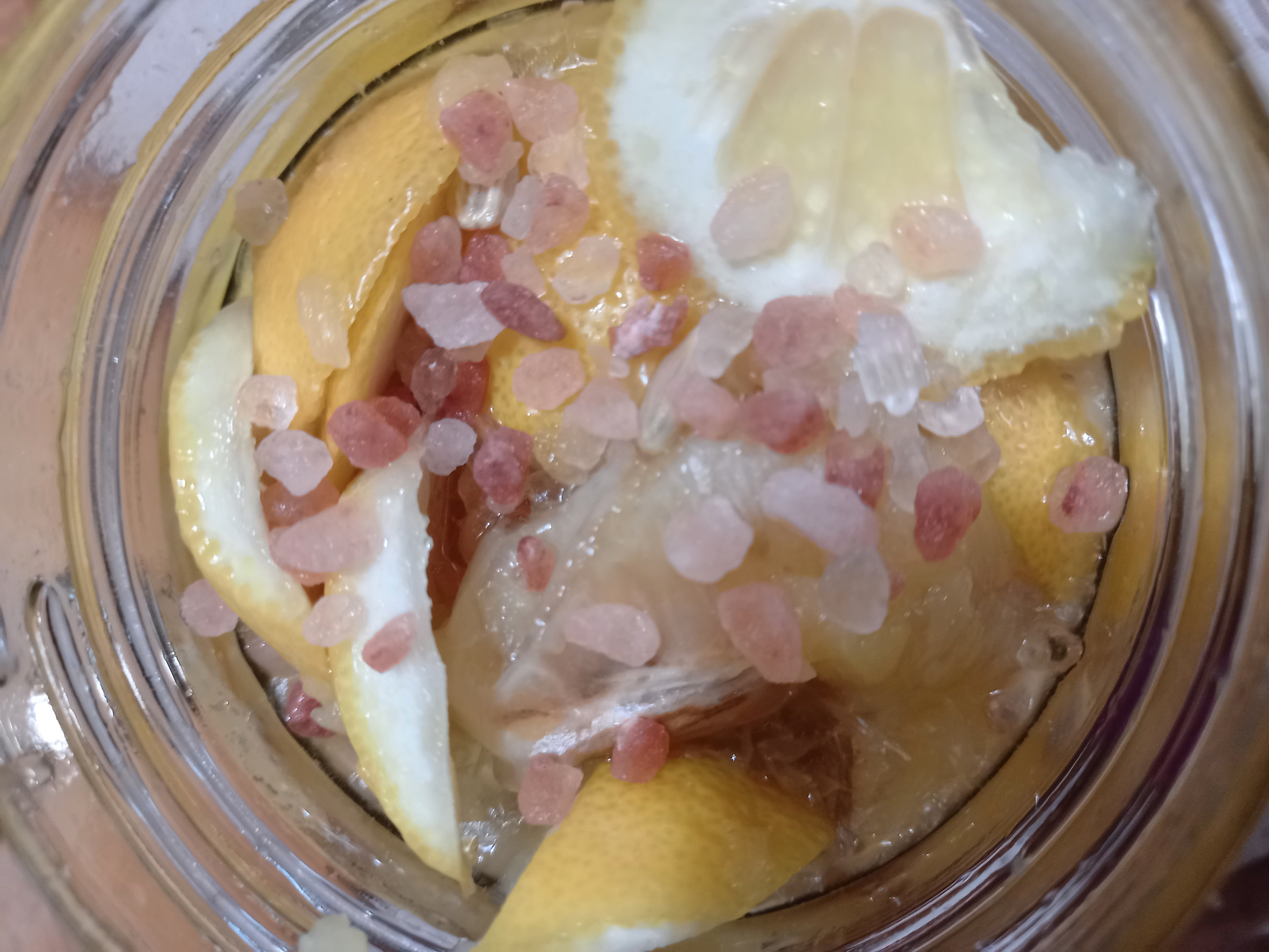 꿀에 레몬을 넣어주고 소금을 넣어 단맛을 내줍니다