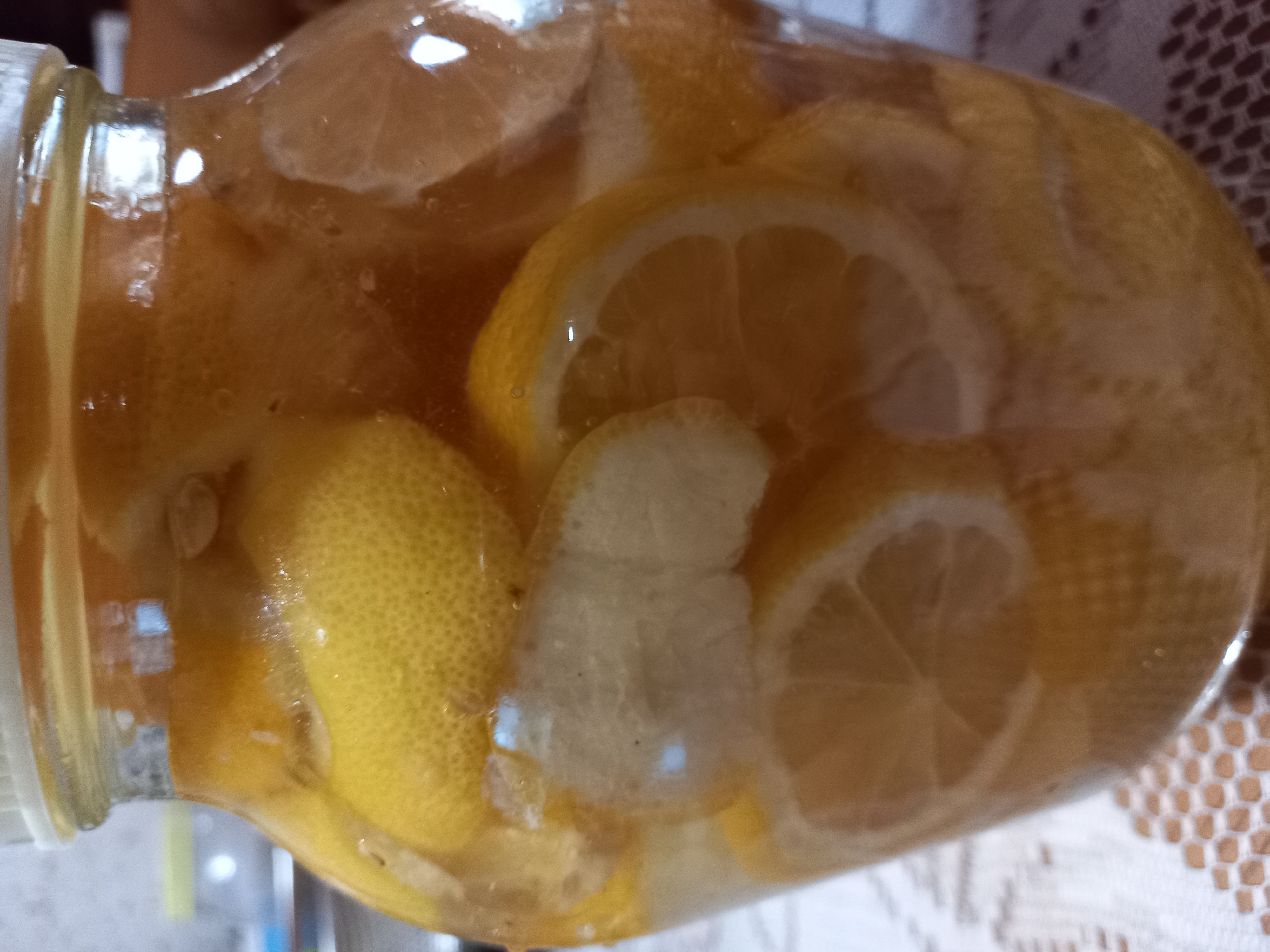 레몬을 꿀에 담은것을 2스푼 정도 컵에 담아서