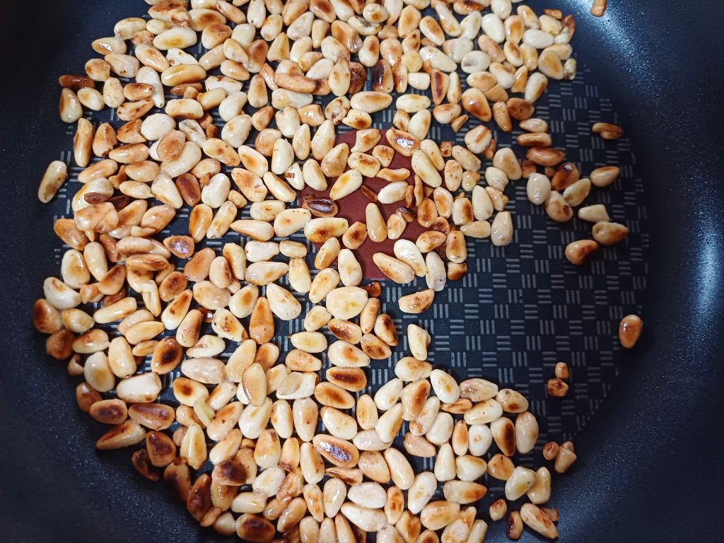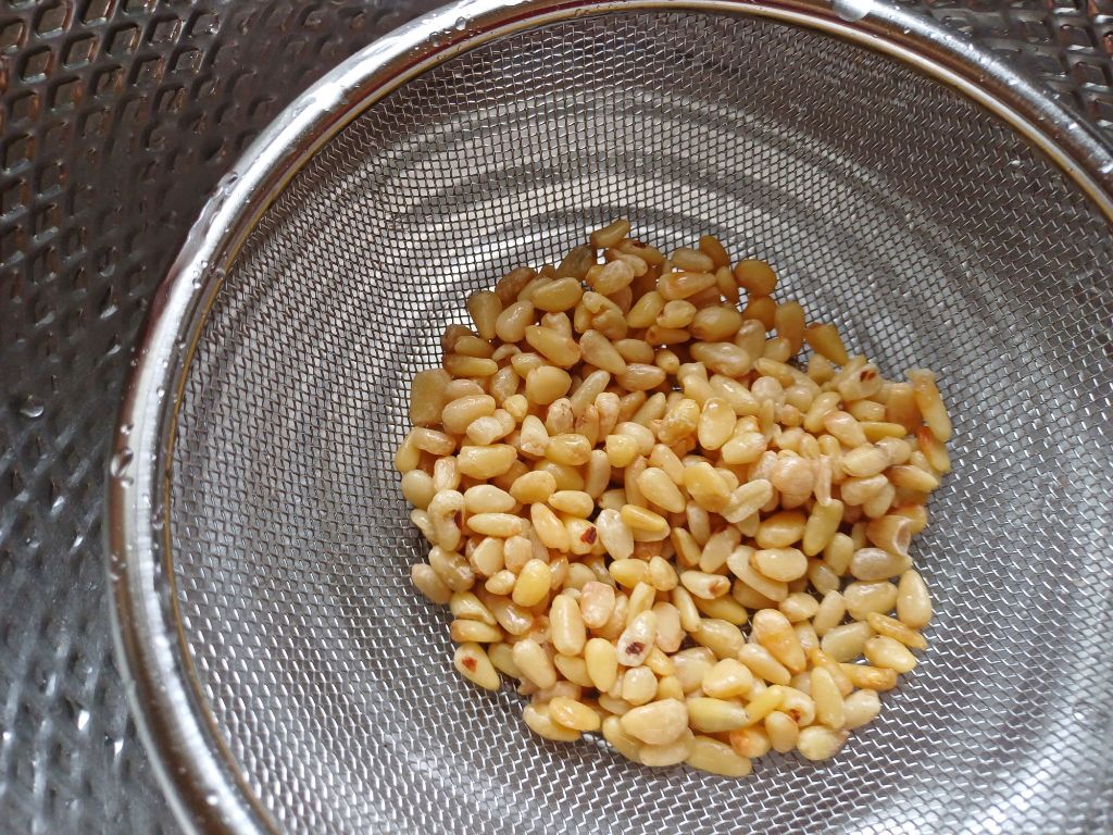 씻어 둔 잣도 팬에 볶고