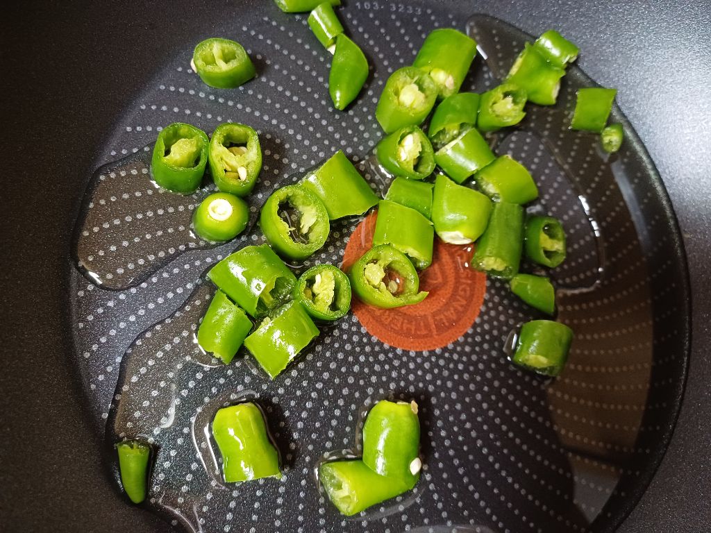 웍에 청량 풋고추 5개를