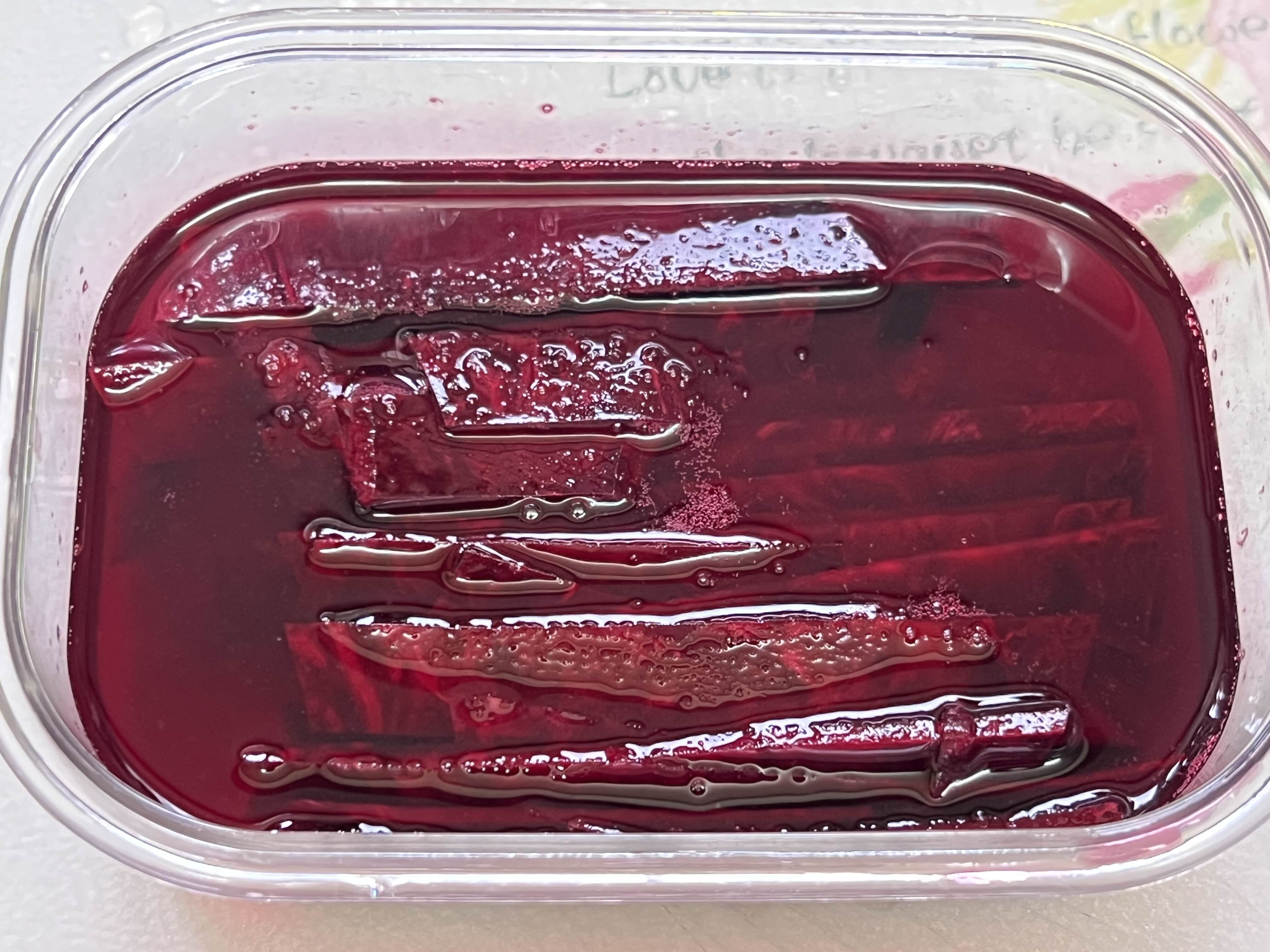 요리초에 비트 썰어넣고 우러나게 두고(30분이상)