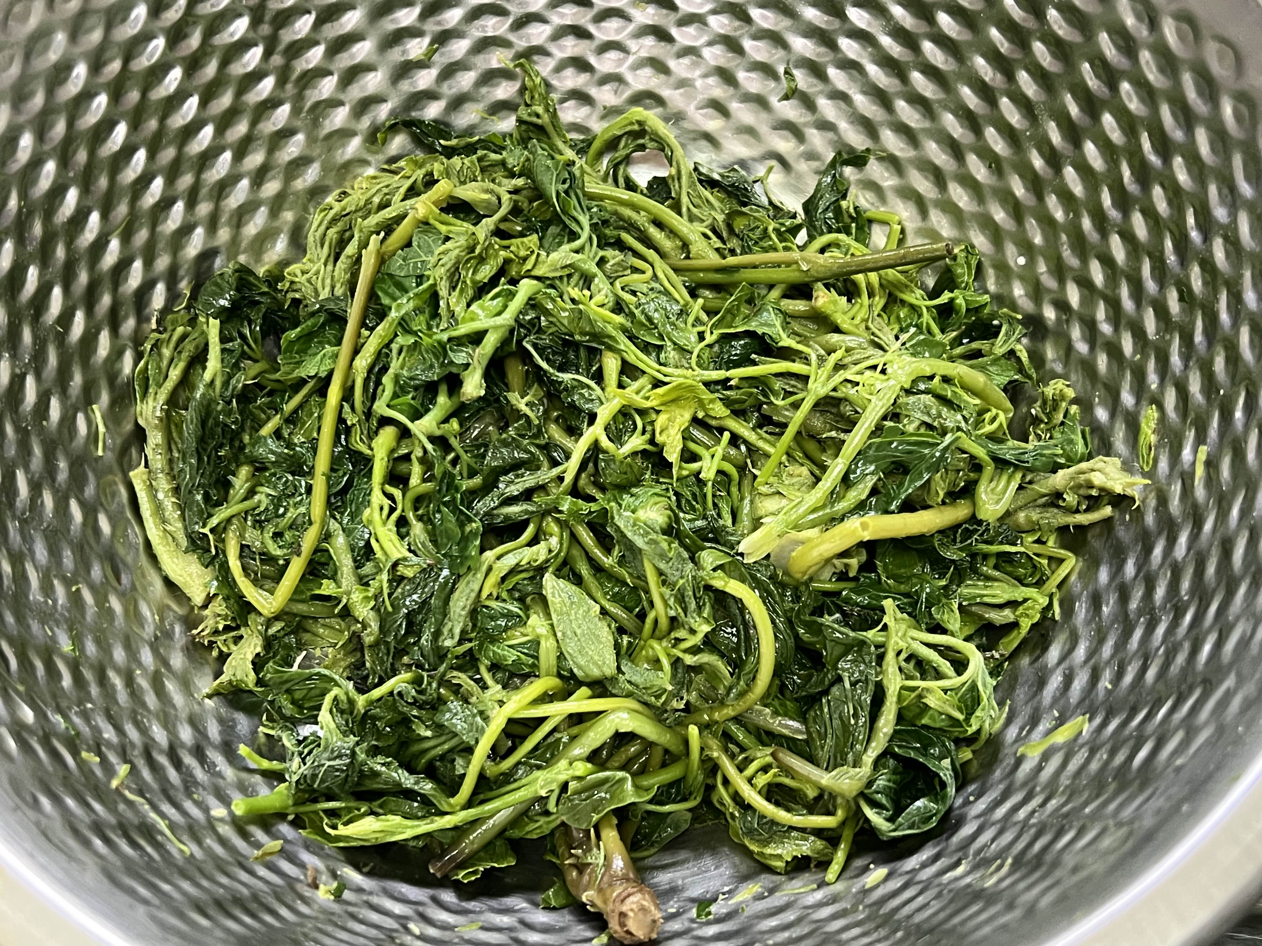 우산나물. 다래순. 오가피. 엄나무순. 홀아비꽃대. 뽕잎. 그리고 한가운데 고추나무순