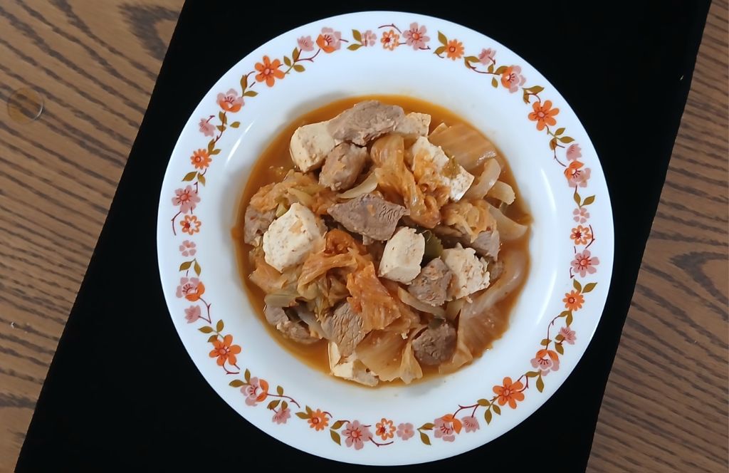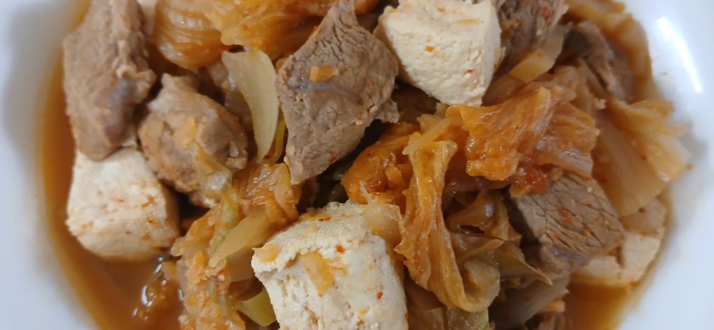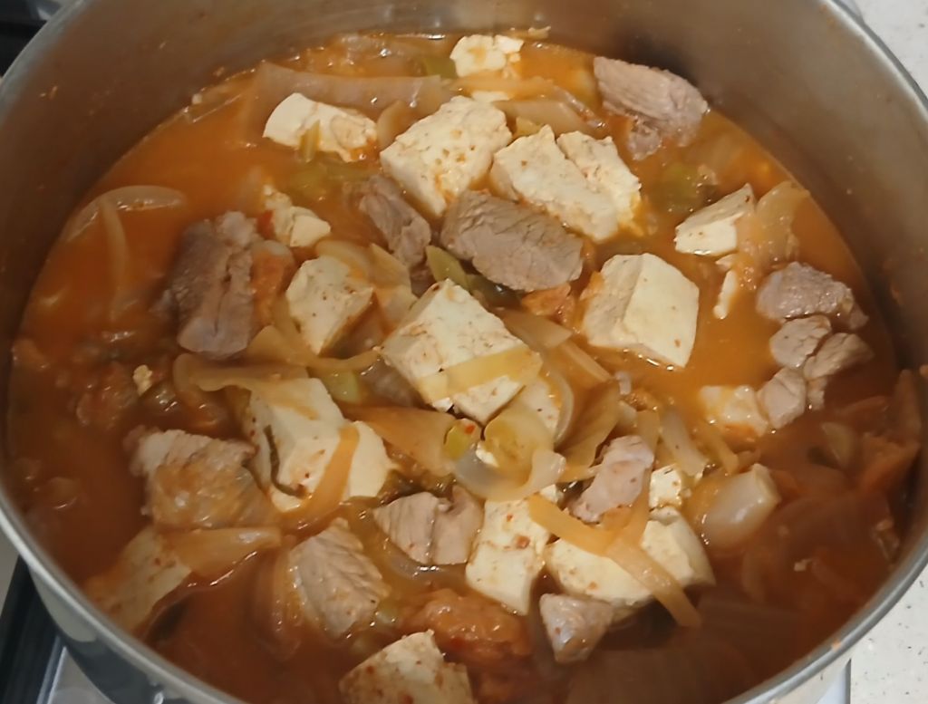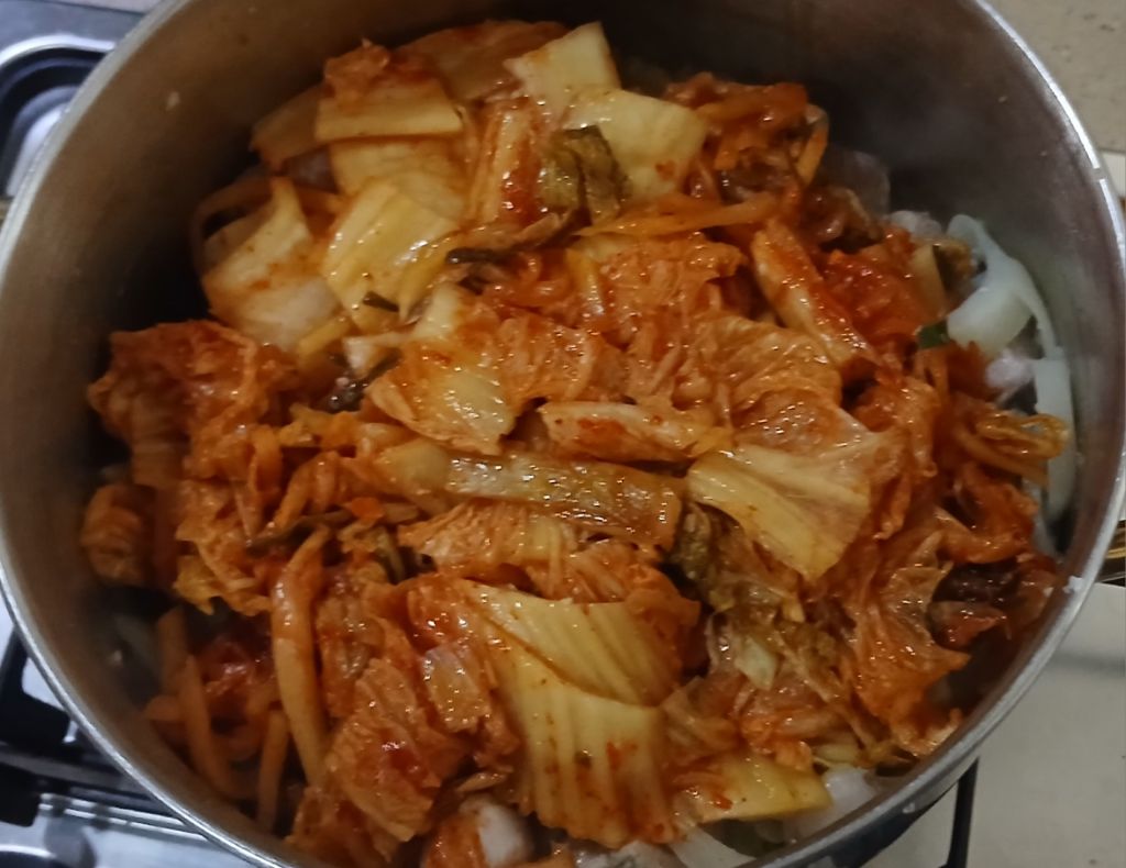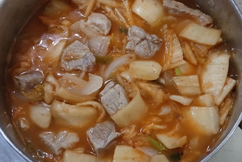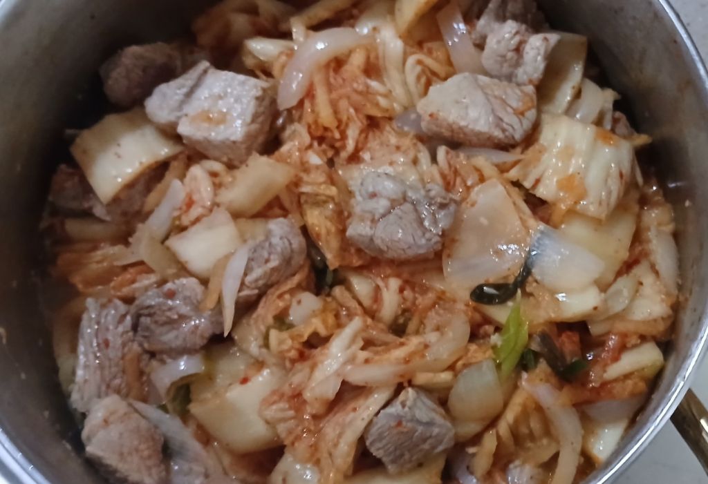 김치를 푹 익혀줬어요
