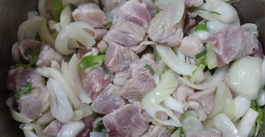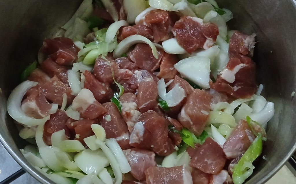 썰어논 돼지 목살 넣고~
