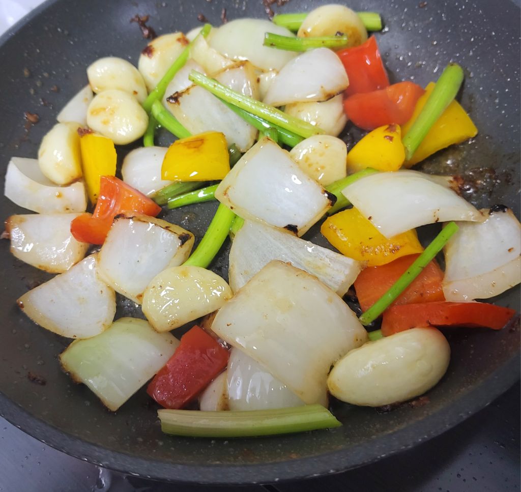 양파 파프리카 미나리 대공이 조금 있어서 넣어주었어요 ~