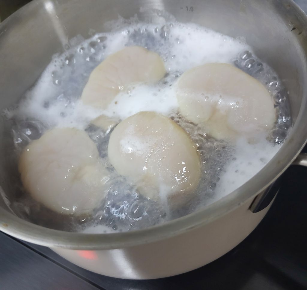 끓는 물에 생강술을 한 스푼 넣고 데쳐줍니다