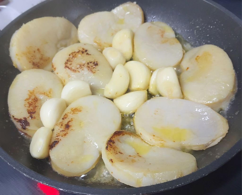 관자 슬라이드해서 생강술 1스푼 넣고 구어줍니다
